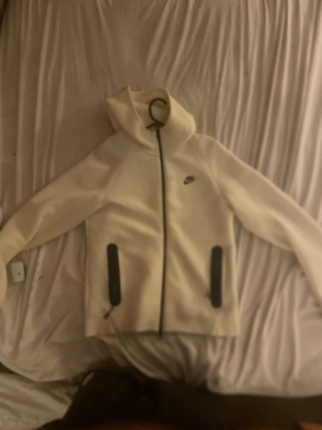 37Selling a Nike Tech Fleece hoodie in cream colour, size medium. It's in great condition and ready for a new home!