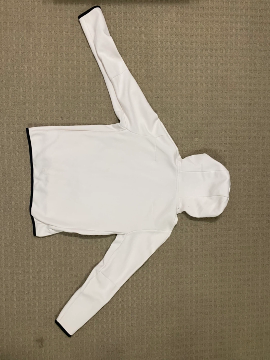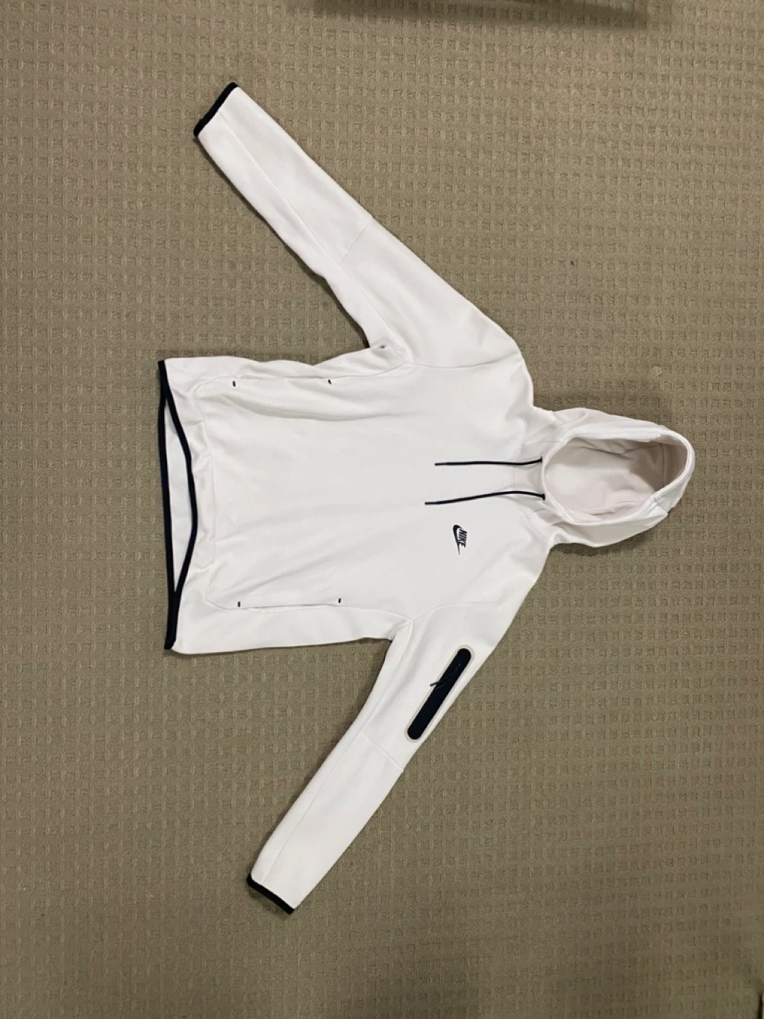 Selling a Nike Tech Fleece hoodie in white. It's in great condition and ready for a new home! Perfect for staying cozy and stylish. Feel free to ask any questions!