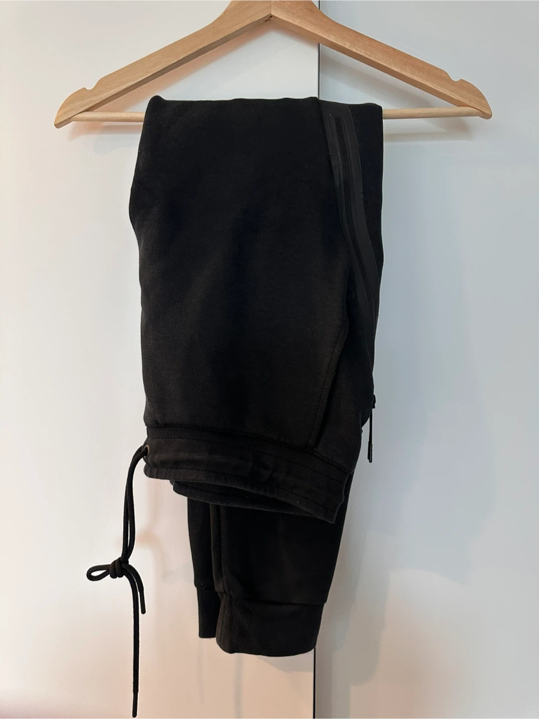 Selling a pair of Nike Tech Fleece pants in black. They're in great condition and super comfy for everyday wear!