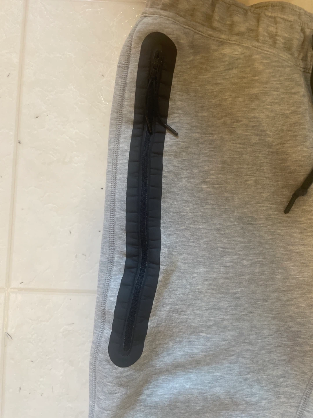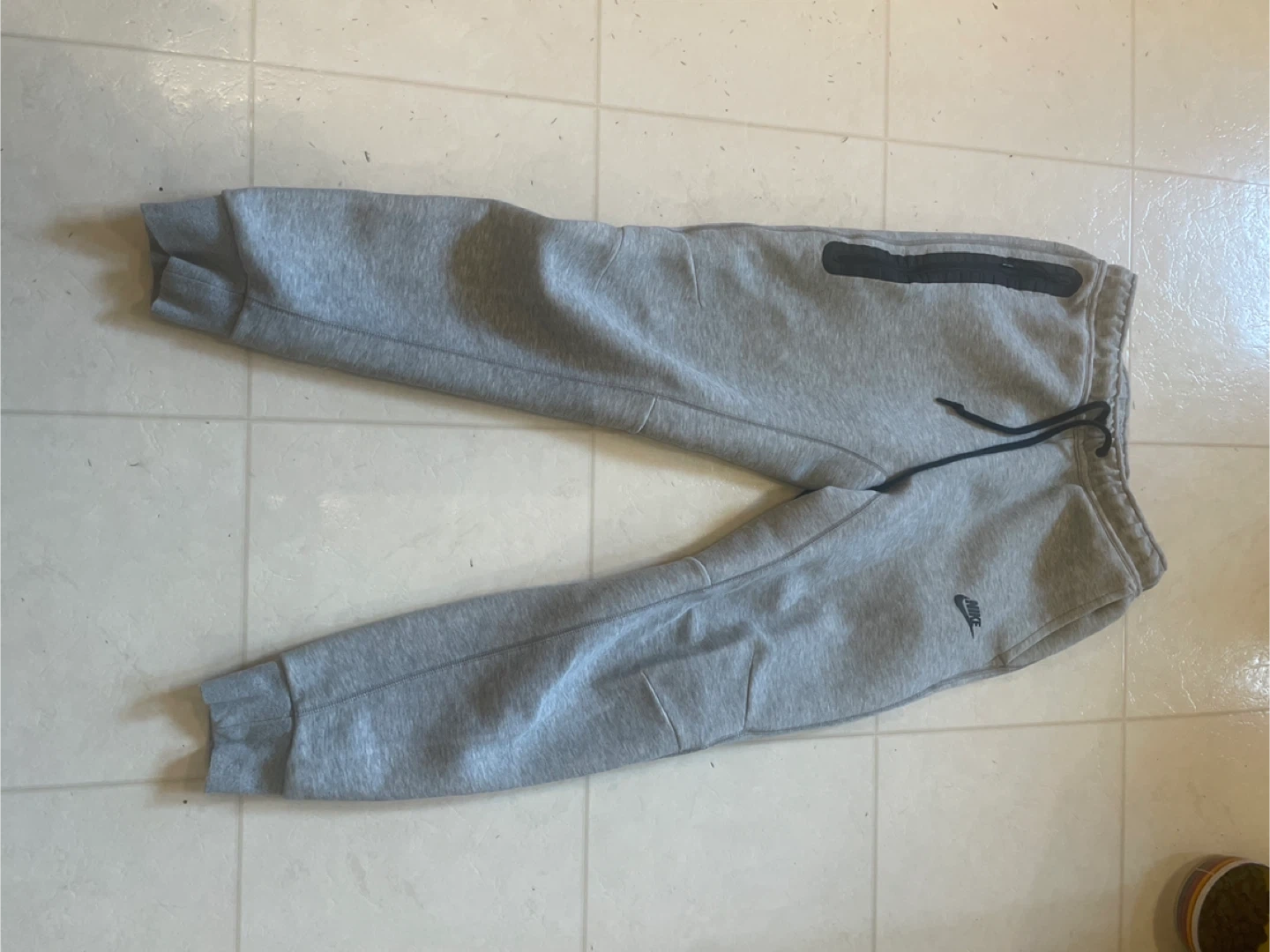 46Selling a pair of Nike Tech Fleece pants in size medium. They're a light grey colour and in great condition. Features a zippered pocket on the side!