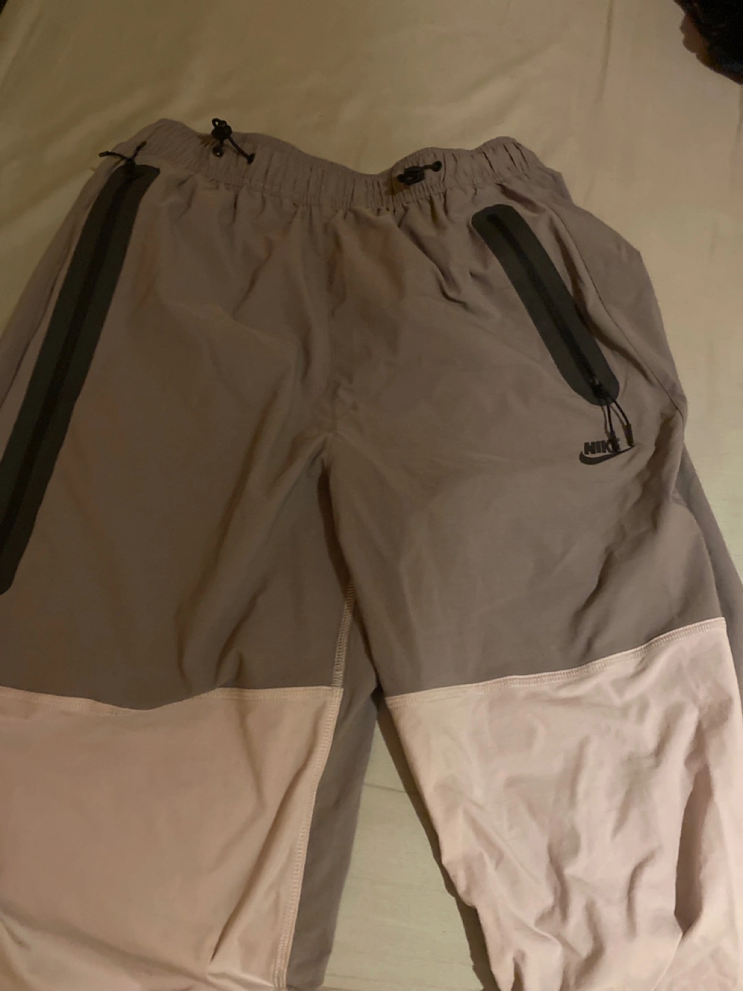 Selling a pair of Nike Tech Fleece pants in size medium. They're in great condition and feature a stylish two-tone design. Perfect for staying comfy and looking good!