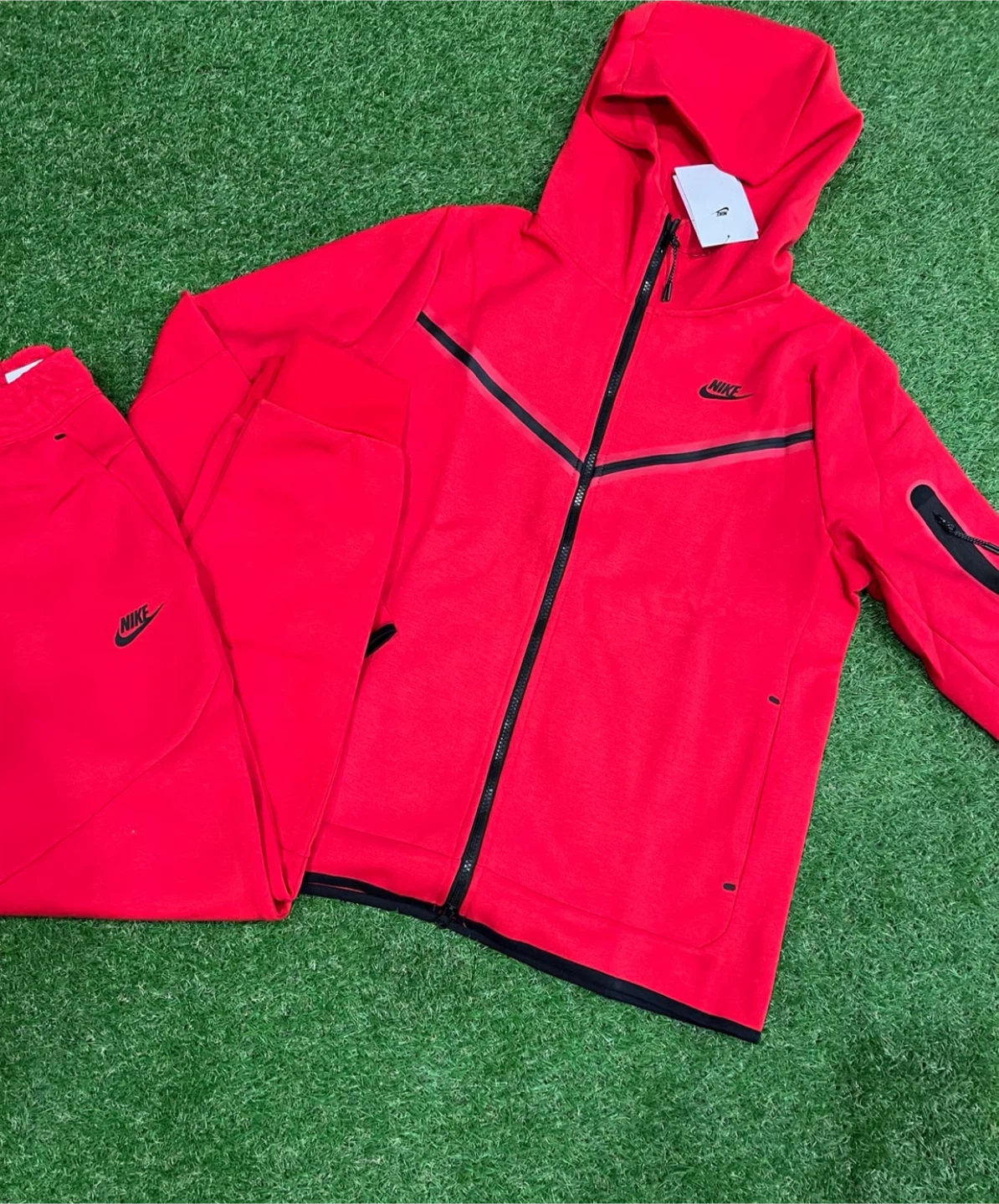 23Selling a Nike Tech Fleece tracksuit in red! It's in great condition and perfect for staying comfortable. This set includes both the hoodie and the pants, ready to wear.
