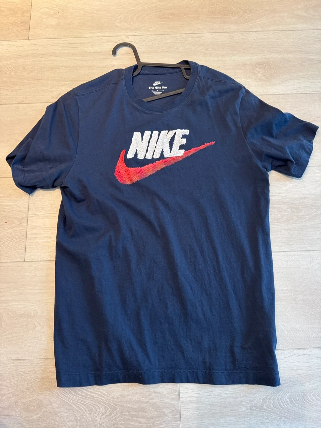 91Selling a Nike T-shirt in blue. The shirt features the Nike logo on the front. It's in great condition and ready for a new home!