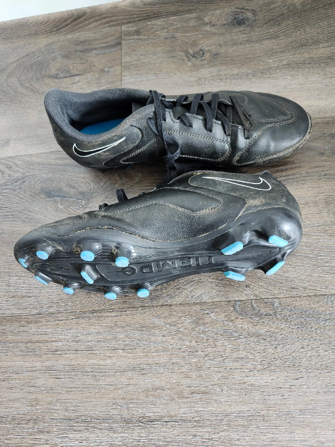 413Size 8.5 (EU 42) Nike Tiempo soccer cleats. Minor wear in the toe. The cleats are in good condition.