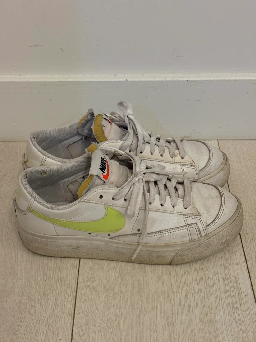 765Selling Nike shoes, in used condition as you can see in the photos and can use a bit of cleaning on the exterior. Size women’s 8!