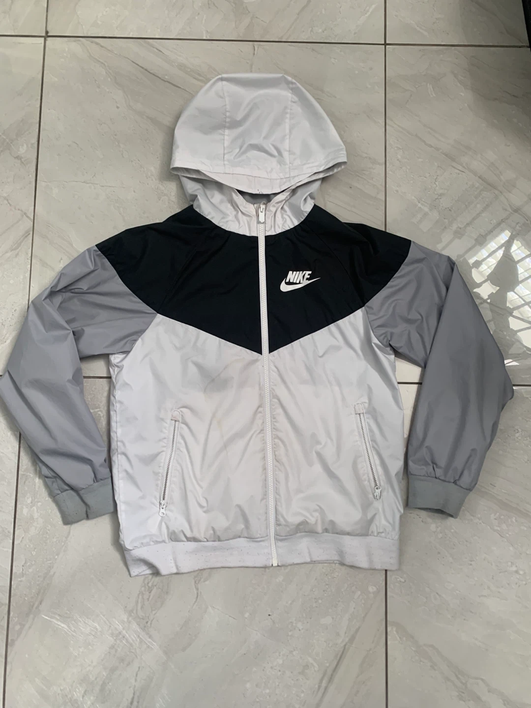 Selling a Nike windbreaker jacket in great condition! It features a stylish colour block design in black, white, and grey. Perfect for layering on those breezy days!