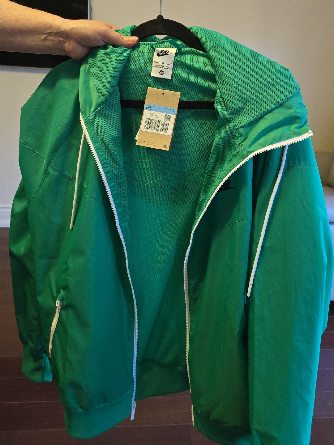 121Selling a vibrant green Nike Windrunner jacket in size medium! It's in great condition and perfect for layering or wearing on its own. It features the classic chevron design and lightweight material, making it both stylish and functional. A great addition to any wardrobe!