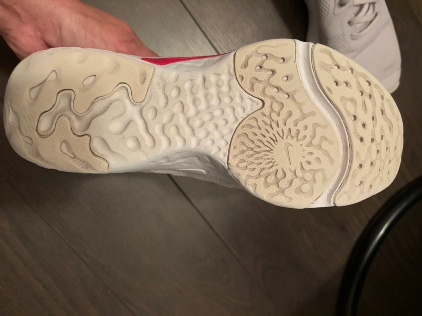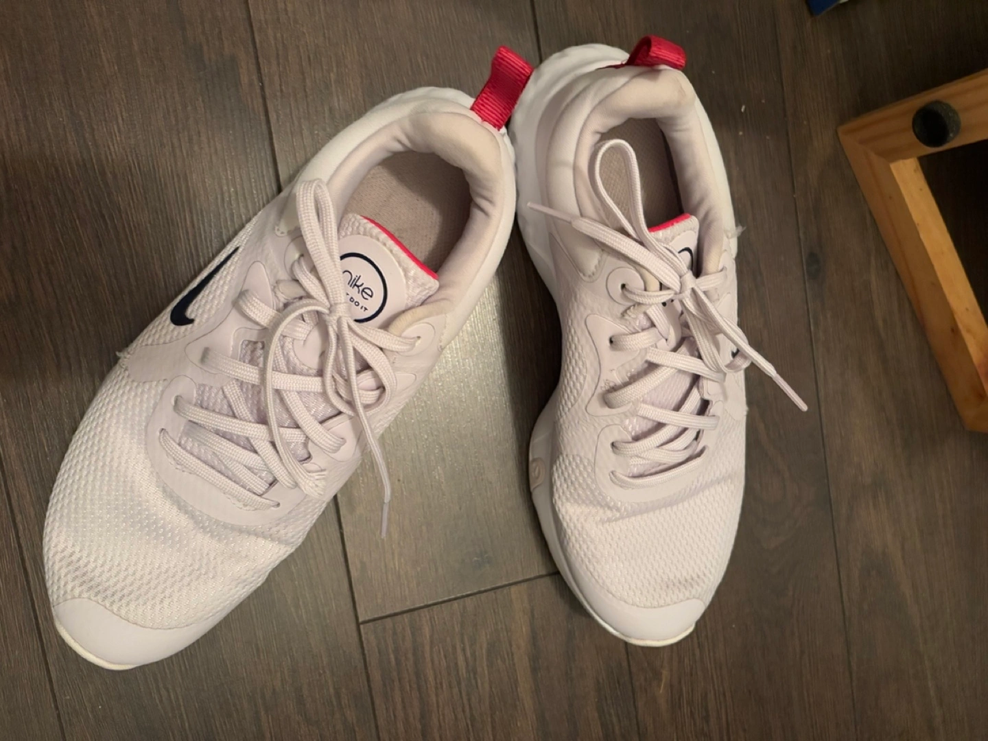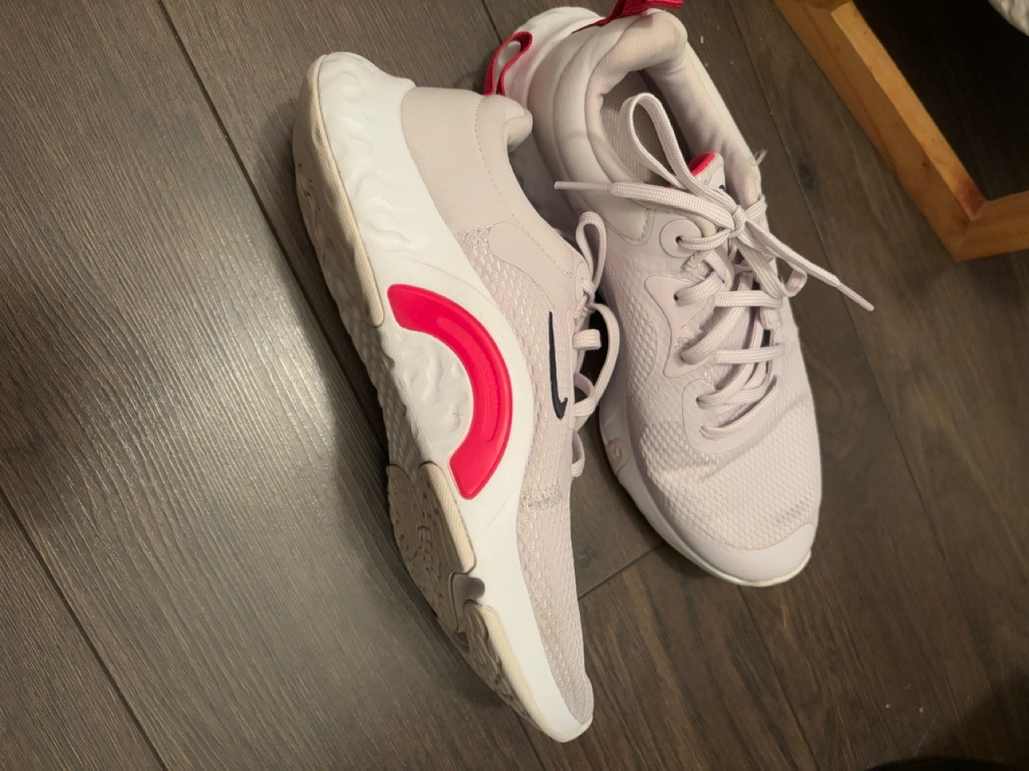 167Nike running shoes with pink accents. Lace-up closure. Size 6
