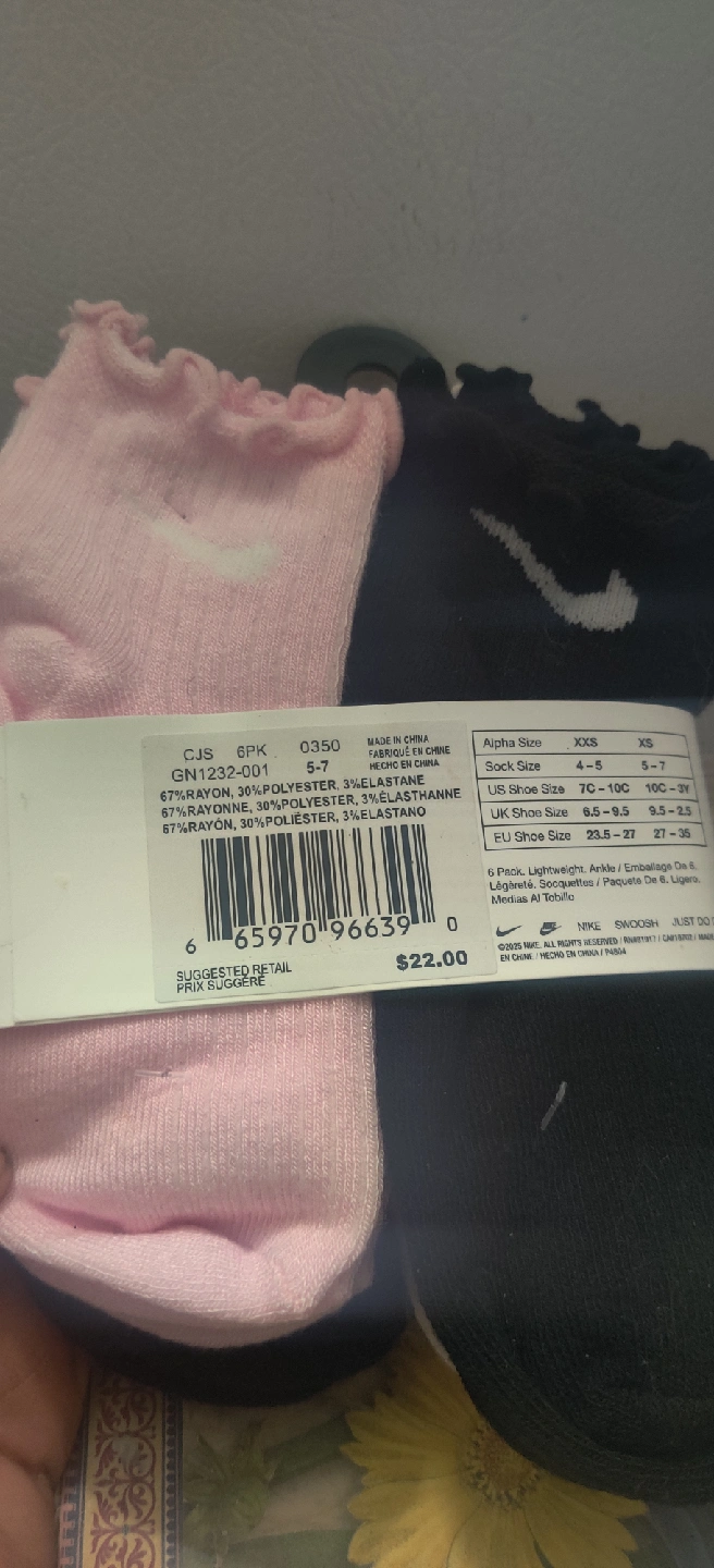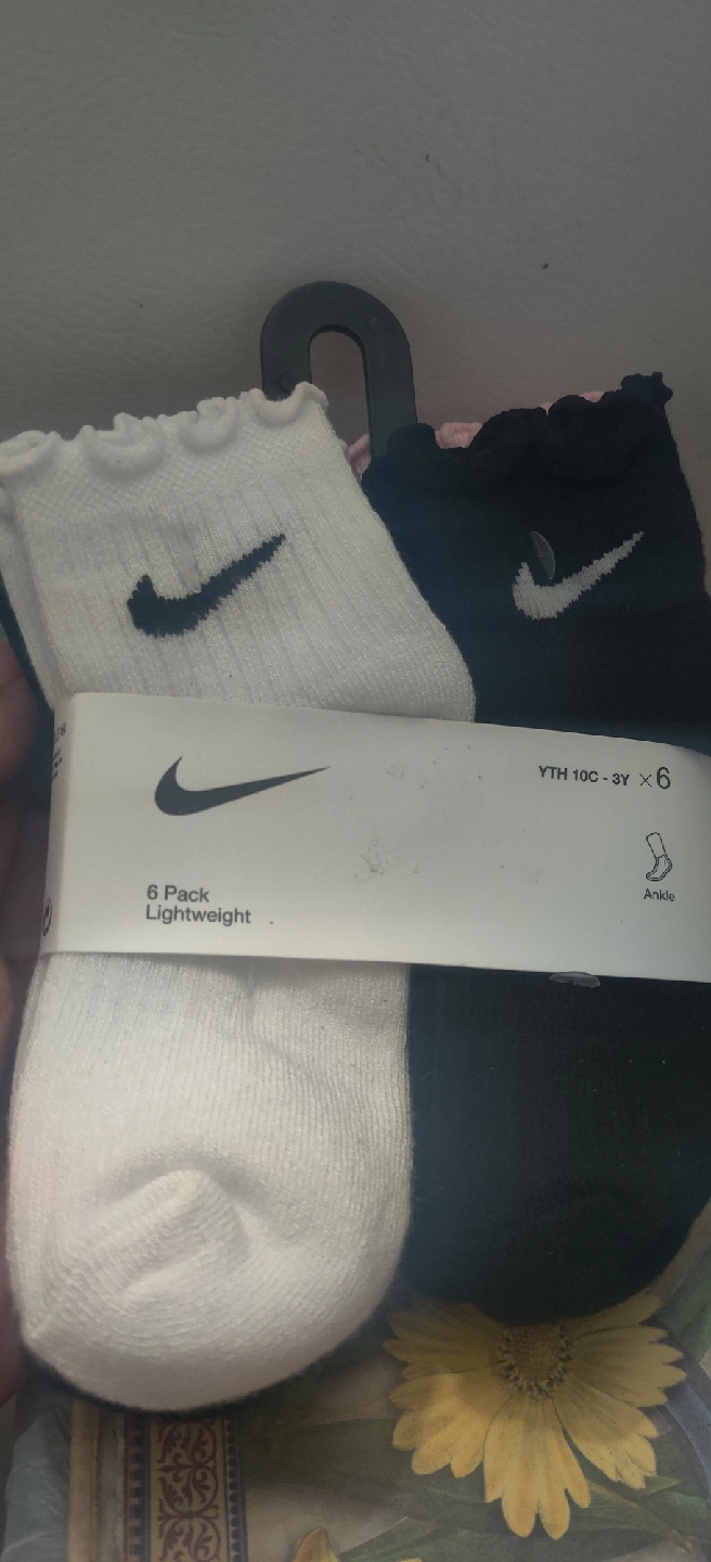 1000+Selling a pack of six Nike youth ankle socks! The size is 10C-3Y, perfect for little ones. They're lightweight and come in a variety of colours