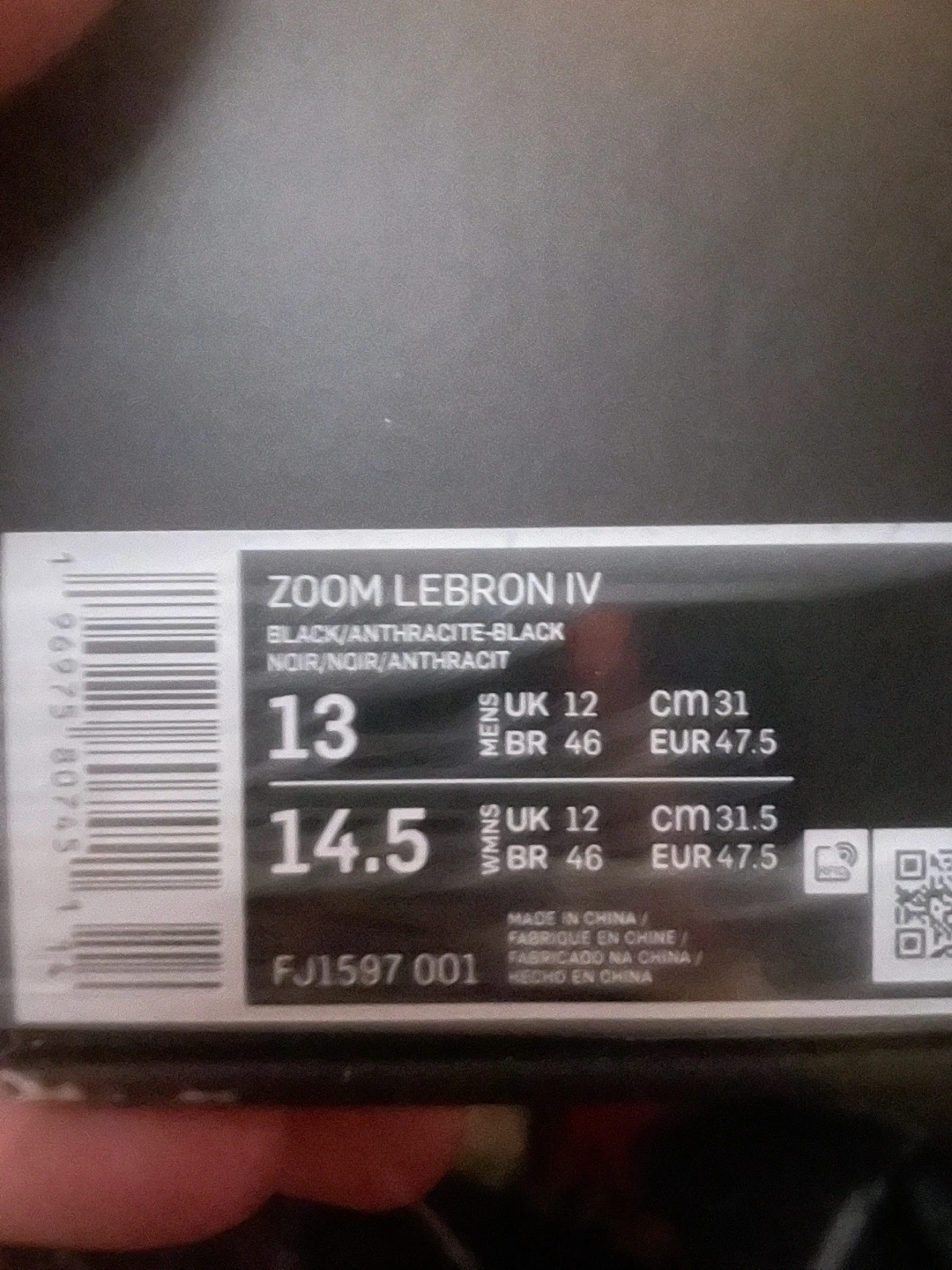 Selling a pair of Nike Zoom LeBron IV sneakers in black. They are a US size 13. The original box is included! Brand new