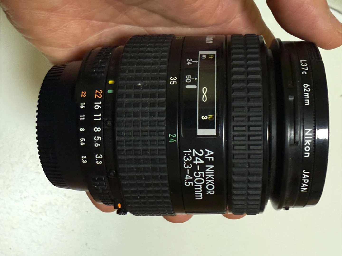 Selling a Nikon AF NIKKOR 24-50mm f/3.3-4.5 lens. It's in great shape and ready to use! This lens is perfect for a variety of photography needs. It has a 62mm filter size.