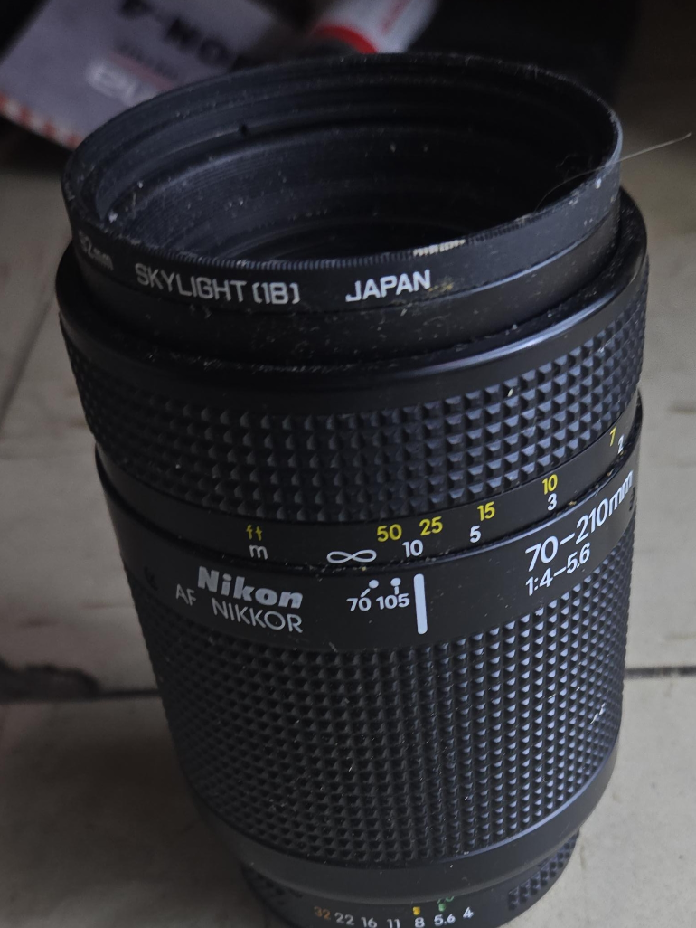 12Selling a Nikon AF Nikkor 70-210mm lens. It's in good condition and ready to use! It has a Skylight (1B) filter made in Japan.