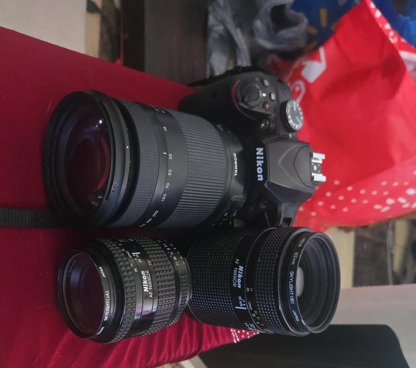 12Selling a Nikon camera body along with a Tamron zoom lens and two Nikon AF Nikkor lenses. The lenses include a 35-70mm and a 70-210mm. HOYA 62mm SKYLIGHT (IB) Japan filter is included.