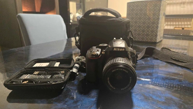 I'm selling a used Nikon D5300 camera, complete with an 18-55mm kit lens, a camera bag, and wireless microphones. This setup is perfect for anyone looking to step up their photography or videography game. The camera has served me well, showing some signs of use but functions perfectly. Included is everything you need to start shooting right away. Key features include: * 24.2MP DX-Format CMOS Sensor * EXPEED 4 Image Processor * 3.2" 1,037k-Dot Vari-Angle LCD Monitor * Full HD 1080p Video Recording at 60 fps * Built-in Wi-Fi and GPS If the ad is up, the item is available, no need to ask! Will only meet in public places with people for safety reasons.