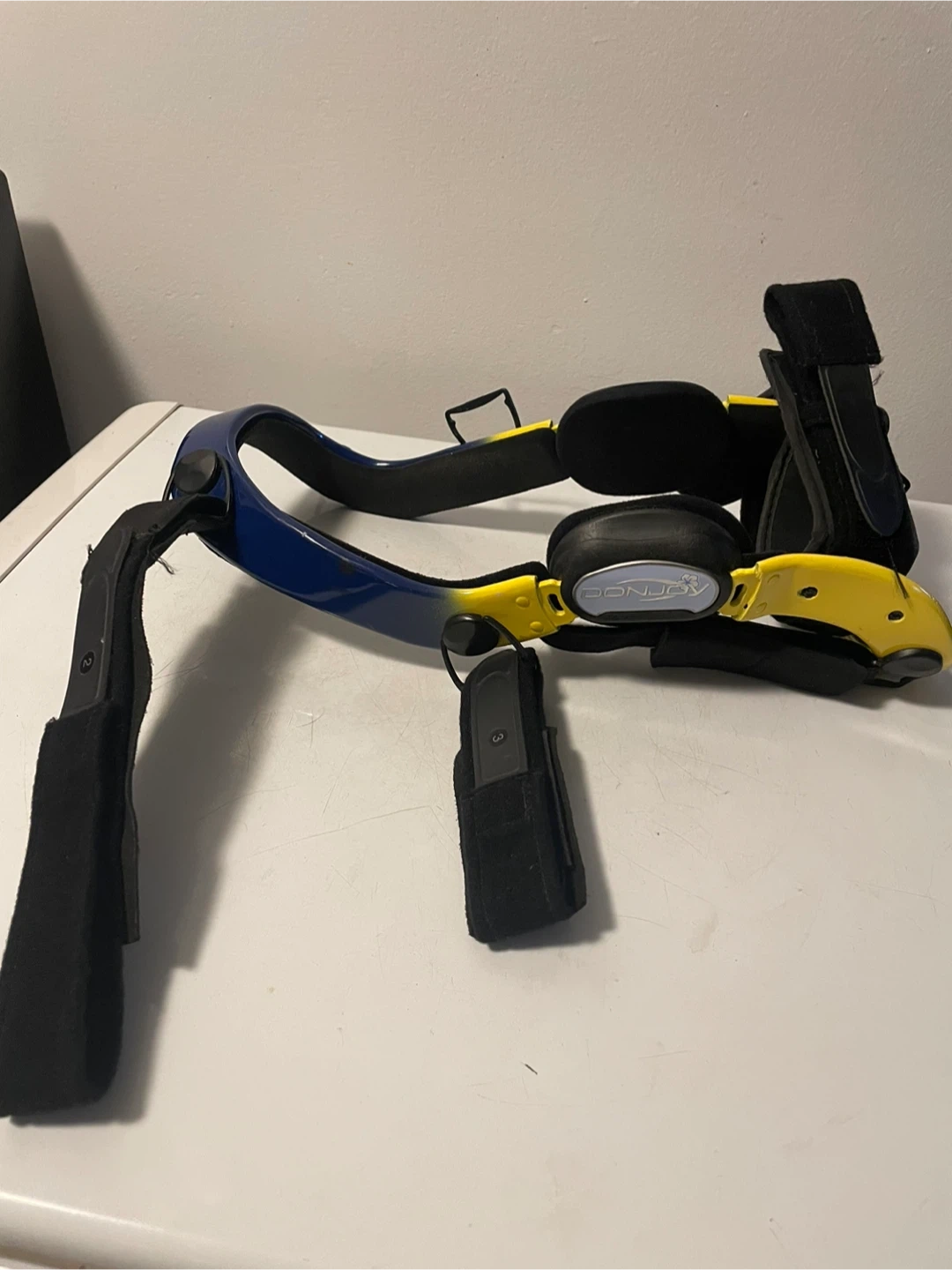DonJoy Therapeutic left leg/knee brace. Adjustable straps for a secure fit. Provides support for knee joints and alleviates stress on the limb. Helps with rehabilitation. Great mobility for sports. It's designed for stabilization. Size small/medium based on muscle mass and size it is left leg designed. $25 retails for $250.