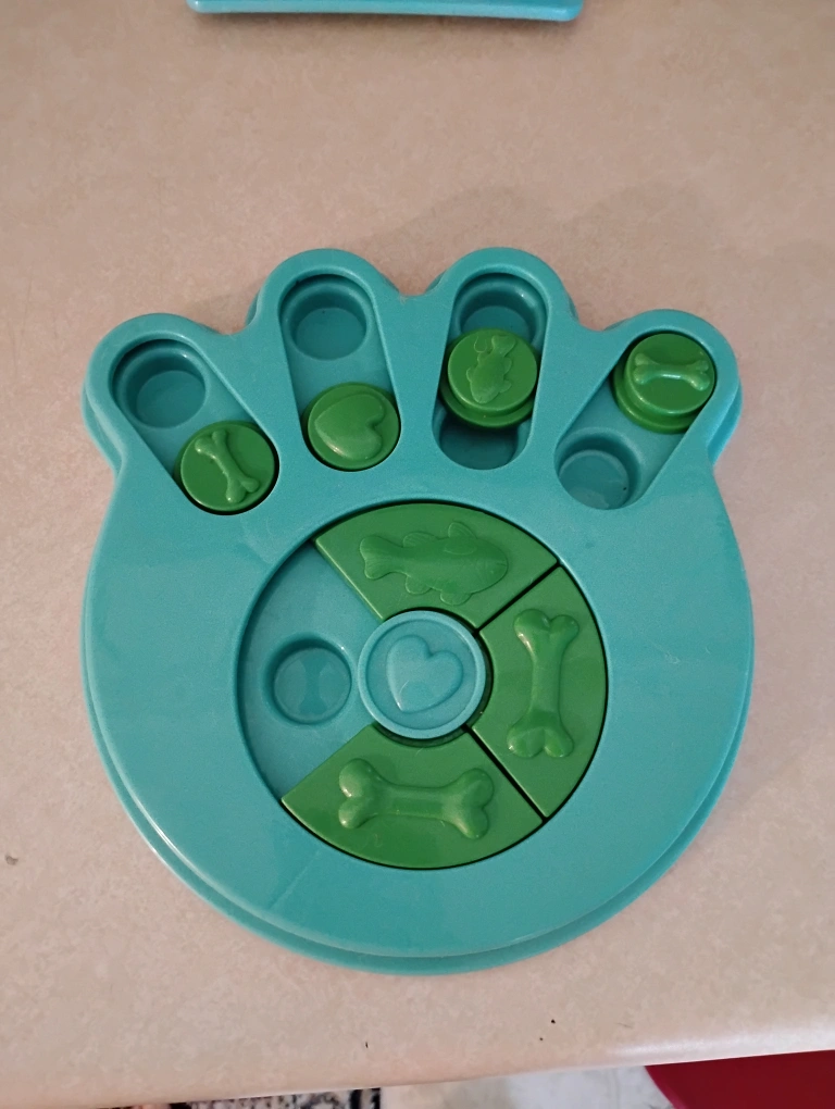 Keep your furry friend entertained with this interactive Nina Ottosson dog puzzle toy! It's designed to challenge your dog's problem-solving skills and prevent boredom. The puzzle features different compartments and sliding pieces to hide treats and encourage your dog to work for their reward