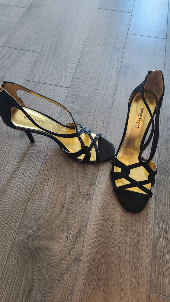 These Nine West heels are in great condition and ready for a night out! They are a size 8 and feature a stylish black design with delicate straps. Perfect for adding a touch of elegance to any outfit!
