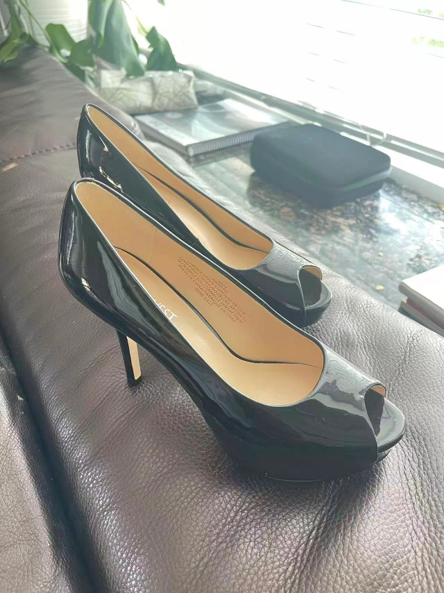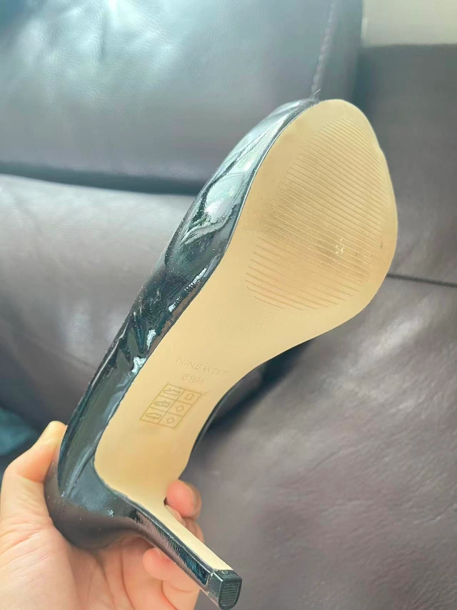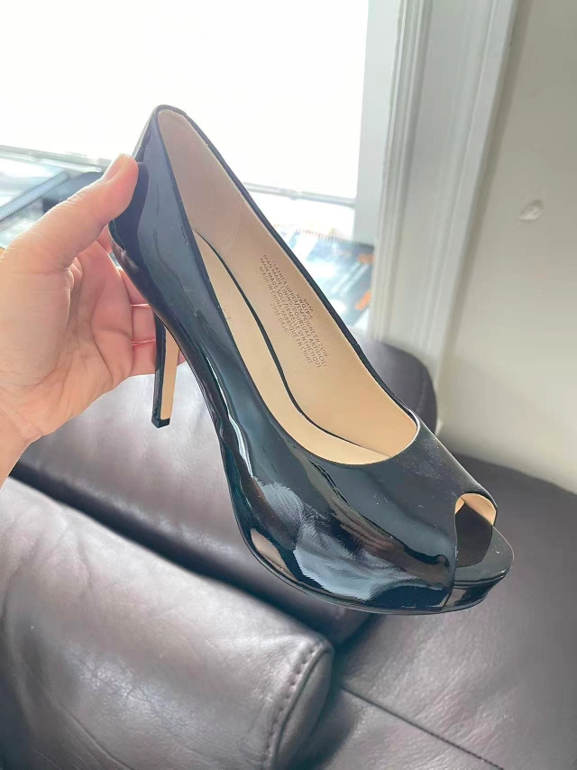 10These are a pair of Nine West black patent leather peep-toe heels in a size 6.5. They're in great condition and ready for a new home! Perfect for dressing up any outfit.