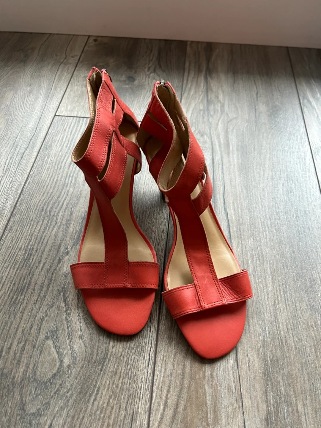 10Selling a pair of orange leather sandals in size 7.5.They're in great condition and would be perfect for a night out or a special occasion!