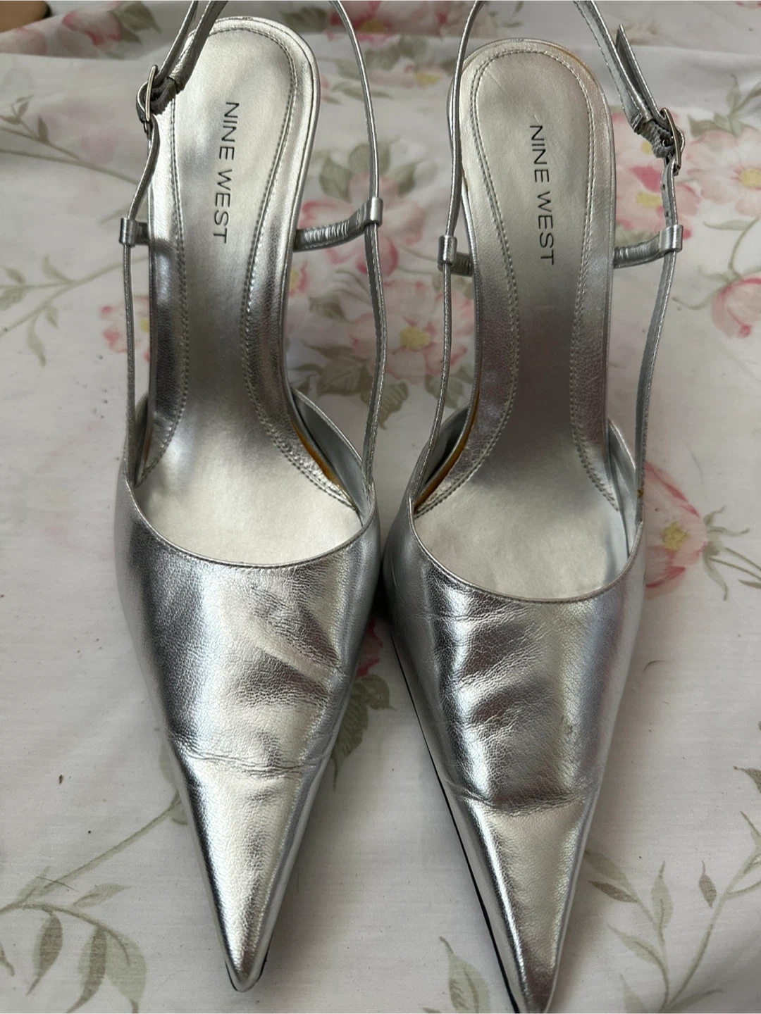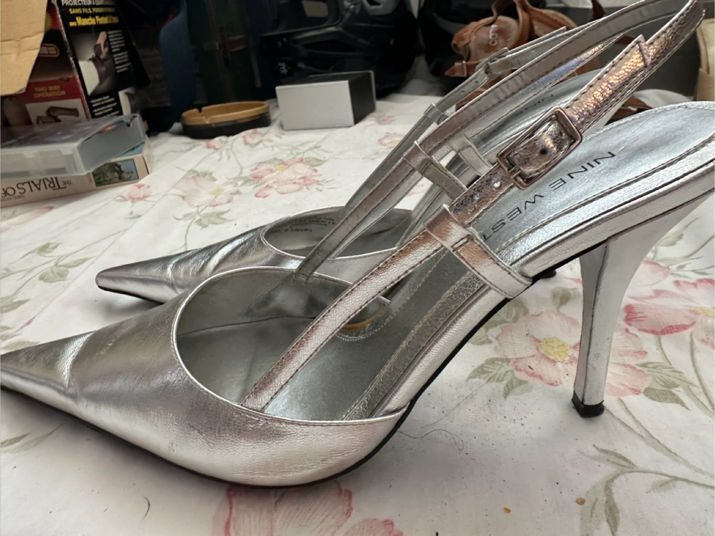 Silver Heels from Nine West in Size 7. Good condition, over a decade old.