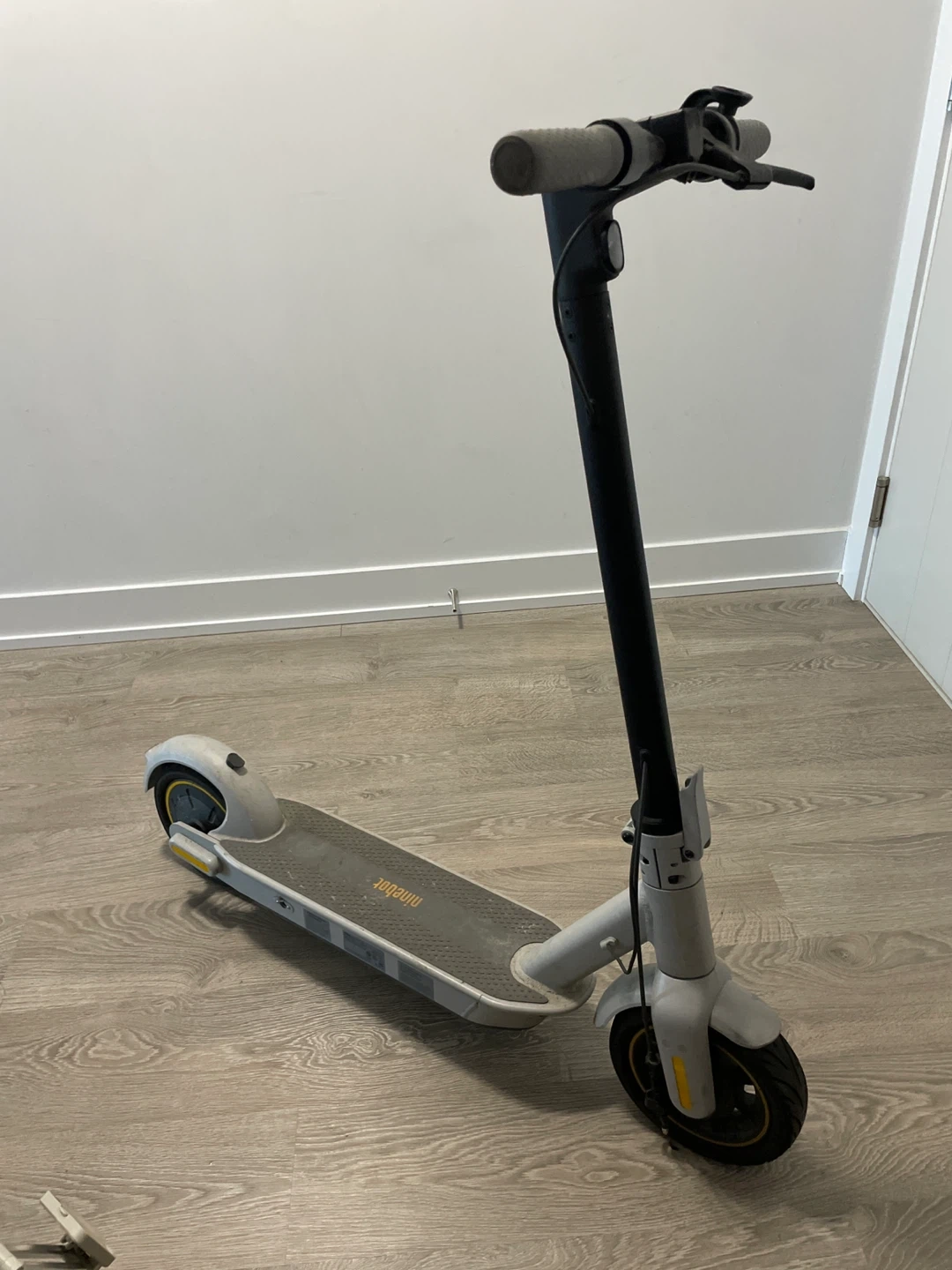 Selling a used Ninebot electric scooter. It's in good condition and ready for a new owner! Great for getting around, it just needs to be cleaned. I’ve had it for about a year now and barely used it. It’s currently dead and I don’t have a charger so you’ll have to bring one if you want to test it. I need this gone today!!! Open to offers as well.