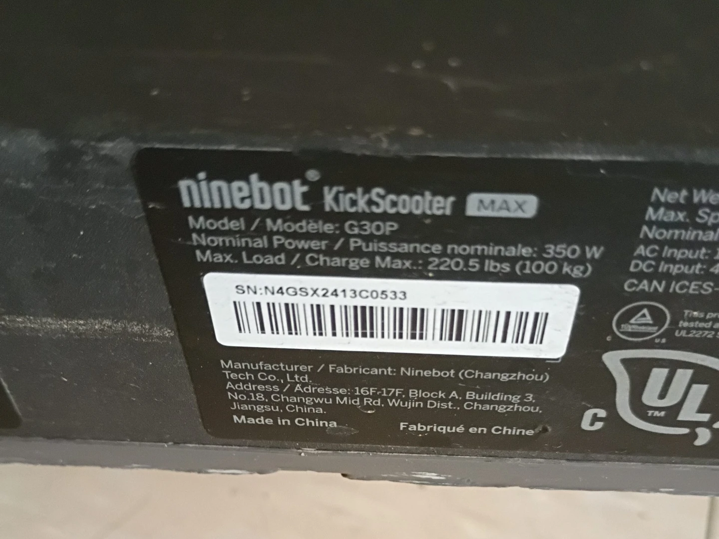15Selling a Ninebot KickScooter MAX G30P. It has a max load of 220.5 lbs (100 kg). Ready for a new home! No air in back wheel, may need to repair... I will accept E-TRANSFER or Cash