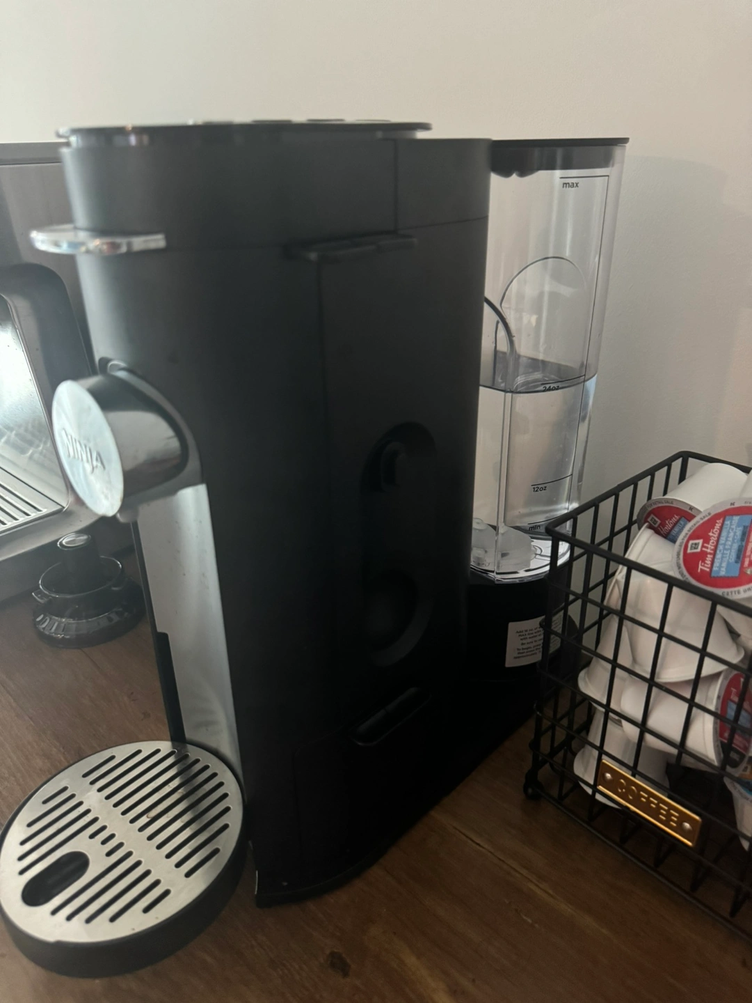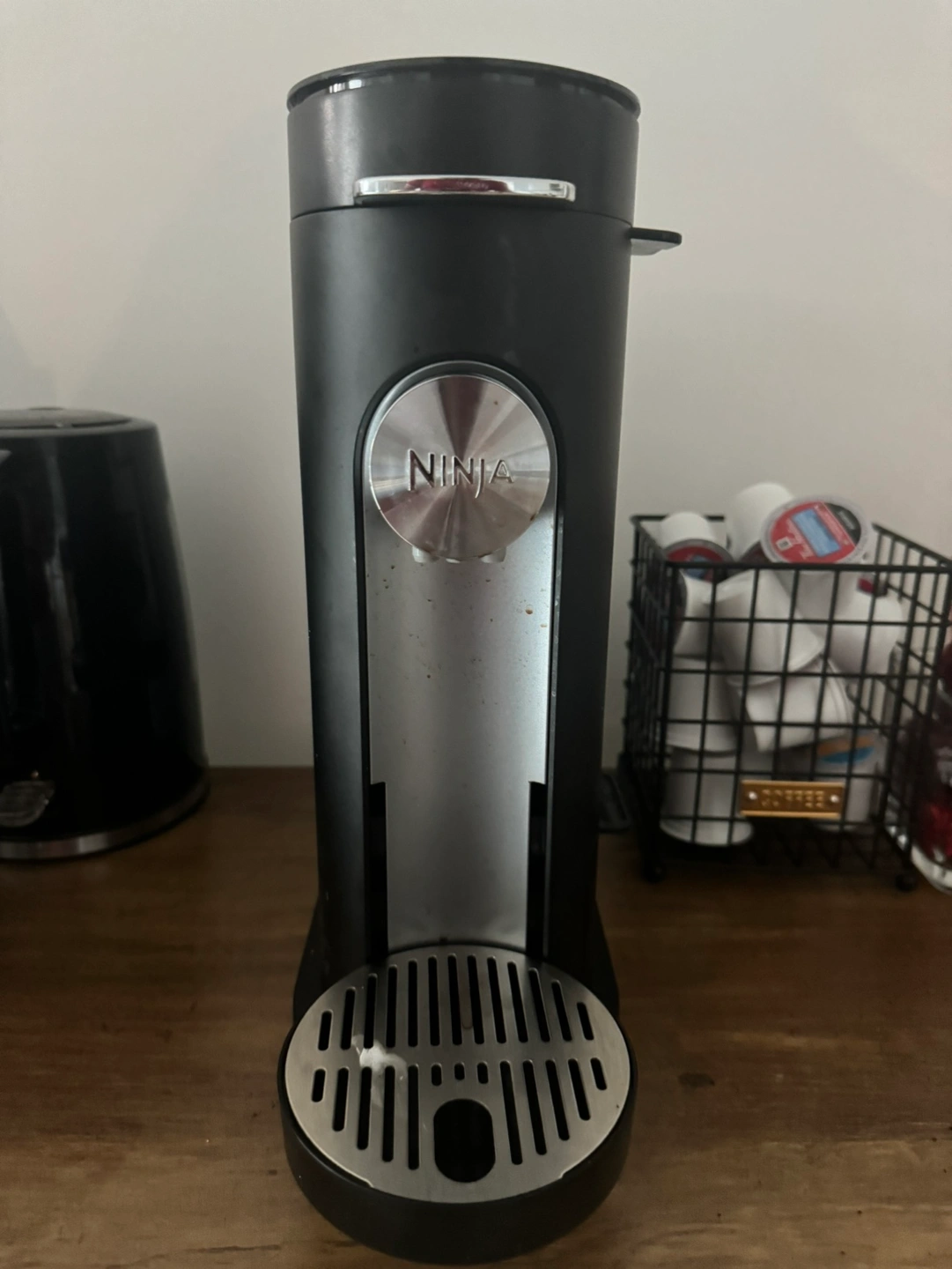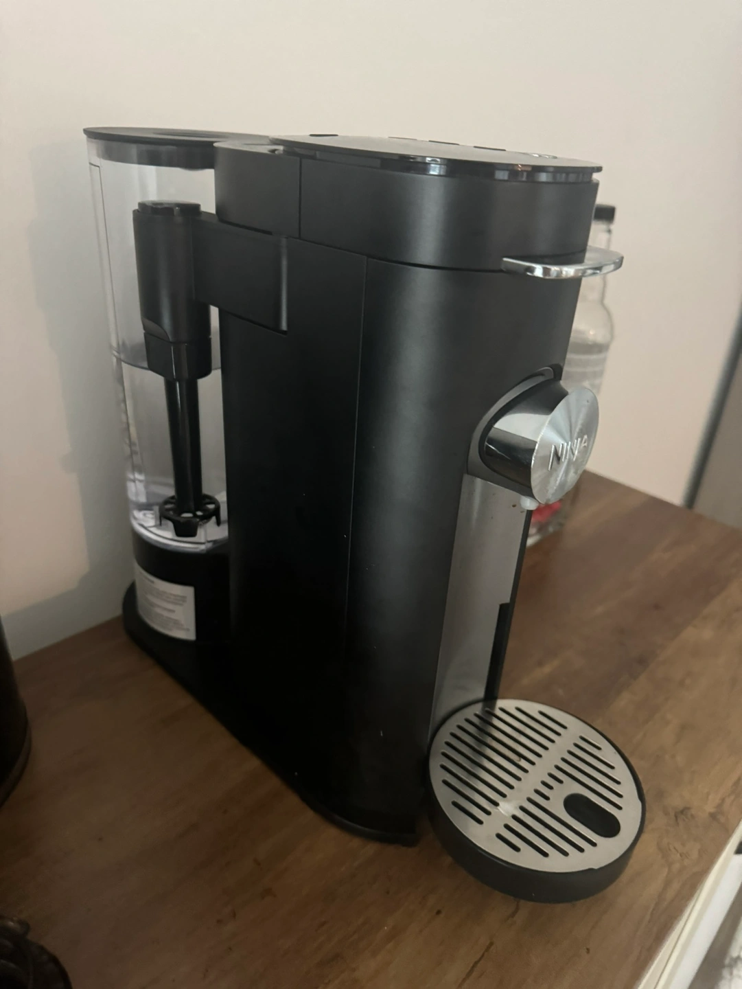 155This is a Ninja Coffee Bar in black. It comes with a drip tray, a water reservoir, and a K-Cup holder. Ground coffee and pods included