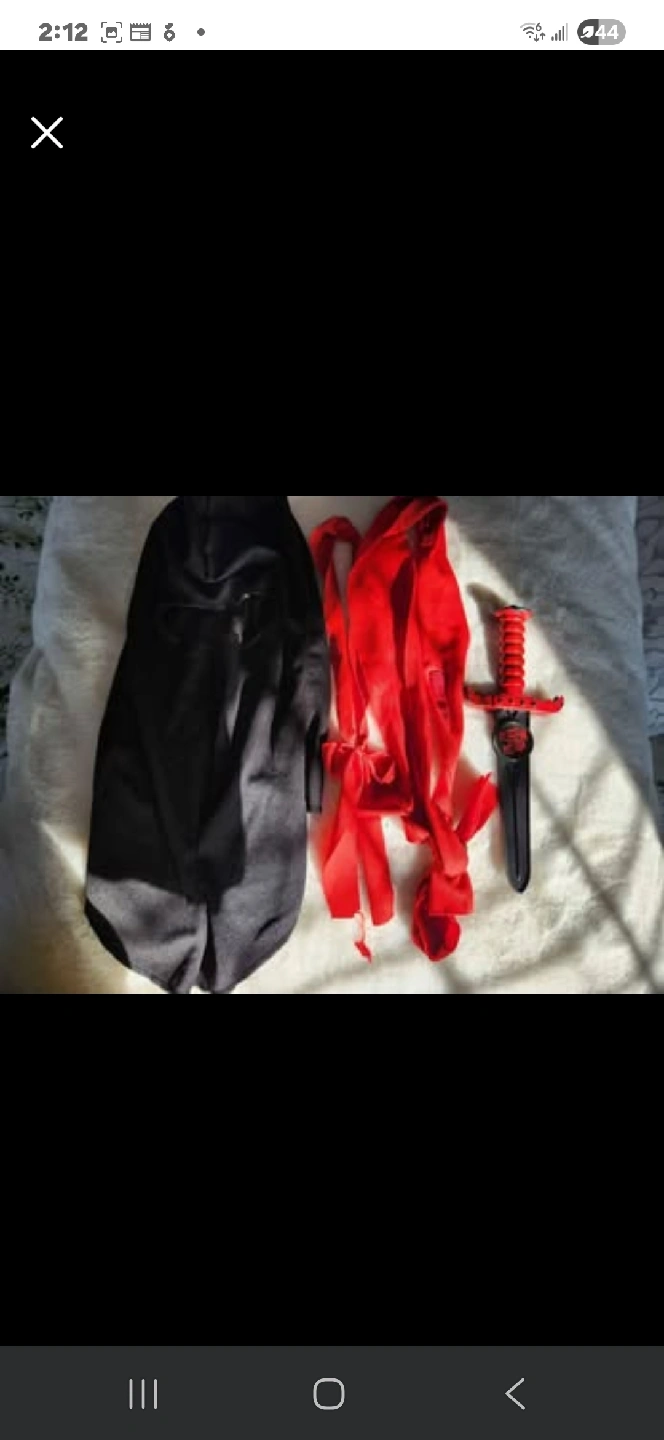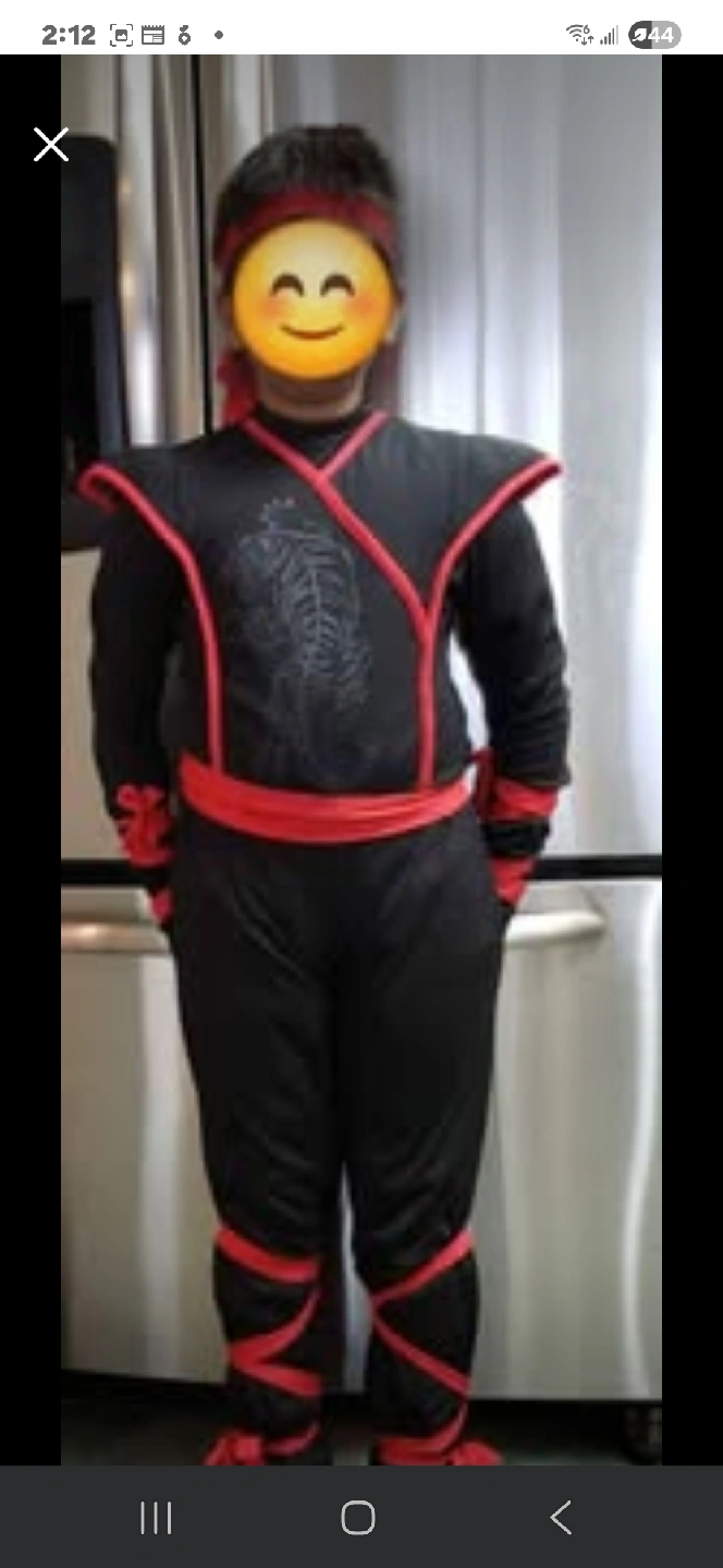 Selling a ninja costume for kids! It comes with the mask, sword, and red ties. Great for Halloween or dress-up! Ninja costume They'll be ready for an epic martial arts adventure as the Blood Dragon Ninja! This black and red ninja costume includes a jumpsuit and a hooded gaiter mask.The jumpsuit features a blood dragon emblem an attached waist sash and attached arm and leg laced-up ties Size-medium 7-8 yrs old payment through cash only, no etransfer. Pick up at 40 Telford St, Ajax, ON L1T 4Z4