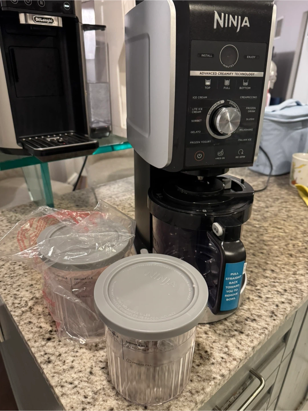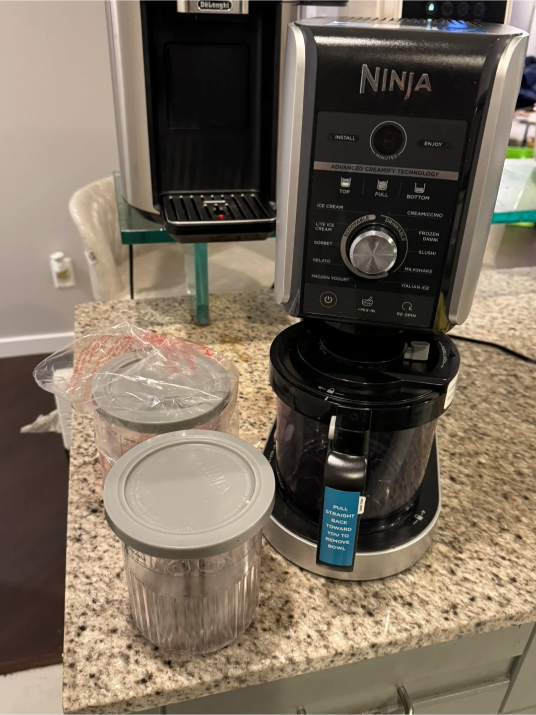 Get ready to make delicious frozen treats with the Ninja Creami! This ice cream maker features advanced Creamify Technology to create ice cream, gelato, sorbet, milkshakes, and more. It includes containers and blades to get you started on your frozen dessert journey