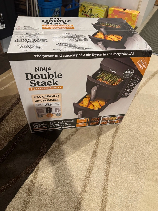 76New in box 2-basket air fryer. Cook up to 4 foods at once. 8-QT