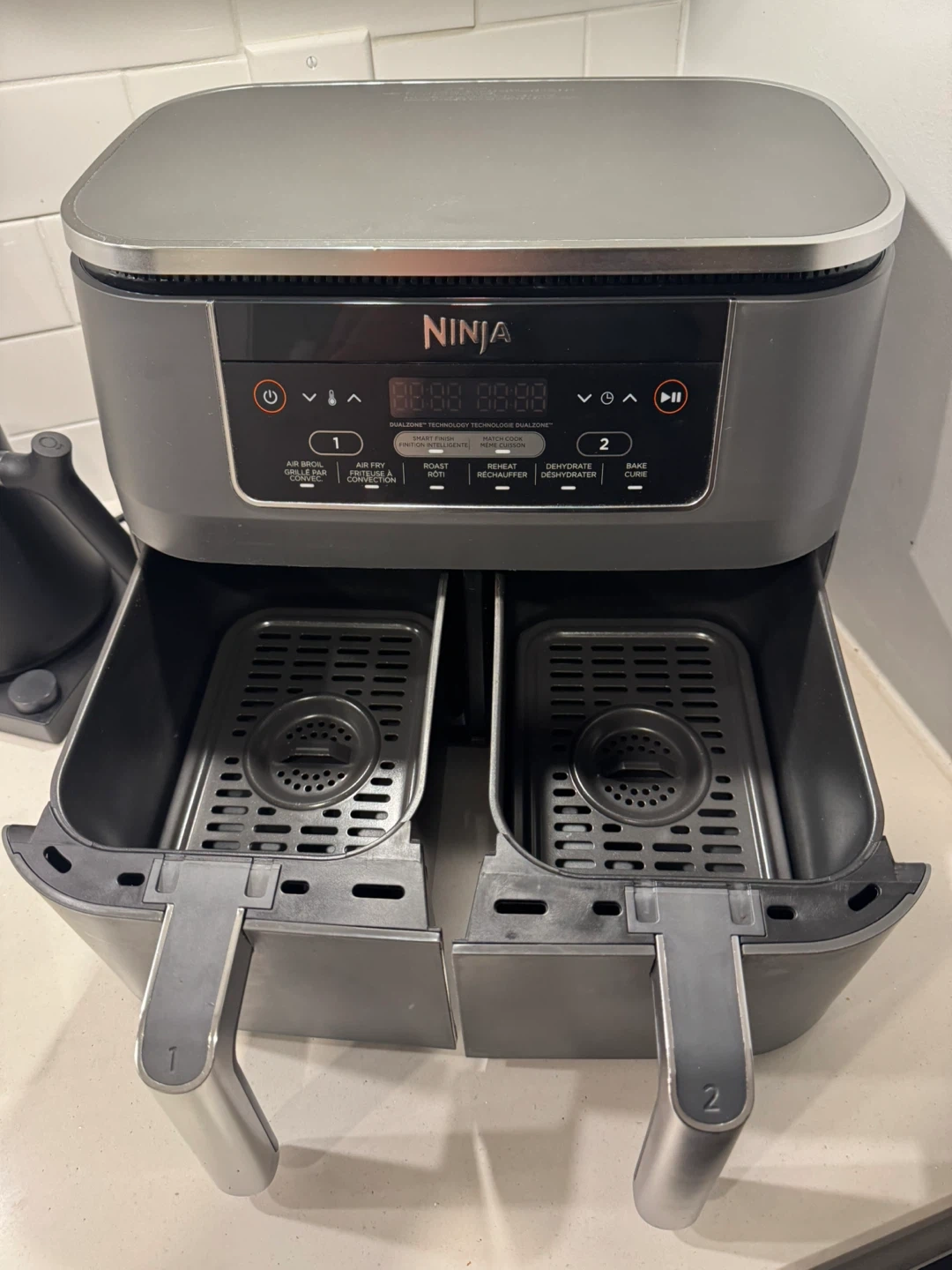 65Selling a Ninja Foodi Dual Zone Air Fryer! It's in great condition and ready to help you make delicious meals. This air fryer features two independent zones, so you can cook two different foods at the same time. Enjoy the convenience and versatility it brings to your kitchen.