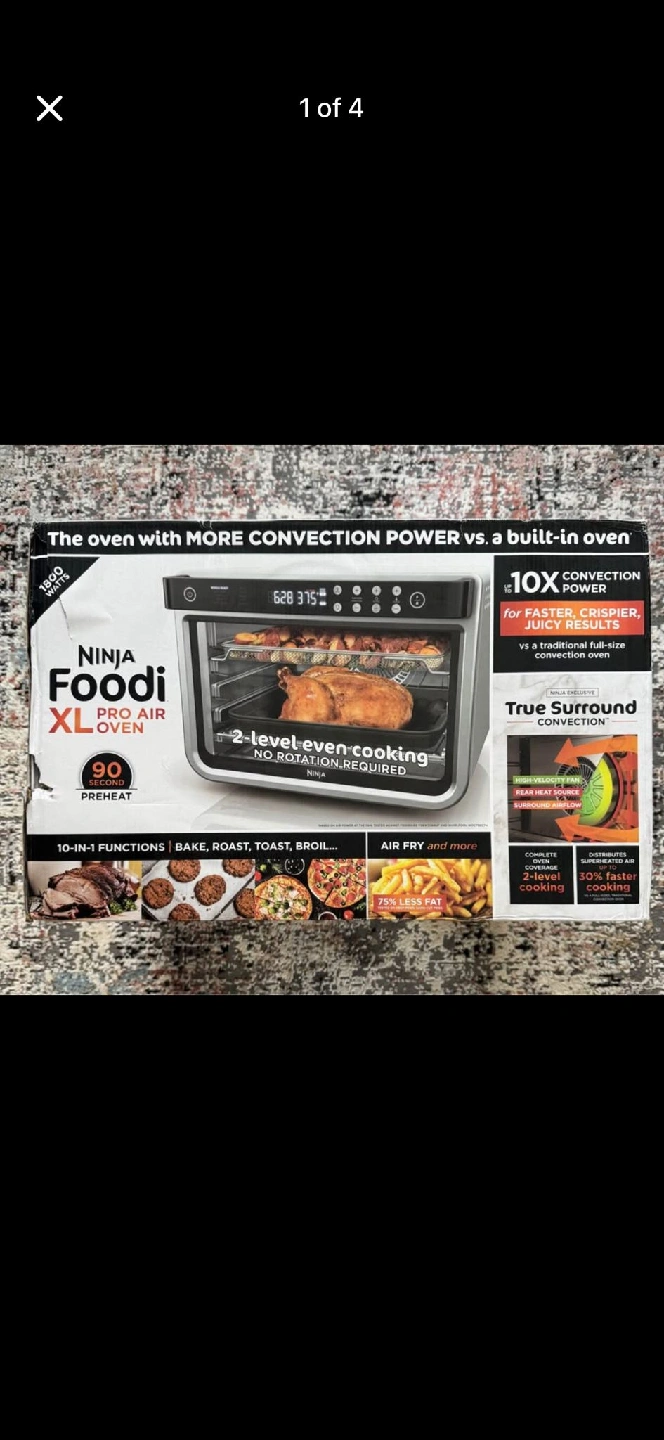 15Selling a Ninja Foodi XL Pro Air Oven. It has 10-in-1 functionality including bake, roast, toast, and broil. It also has air fry and more! It features: - 2-level even cooking - True Surround Convection - 90 second preheat