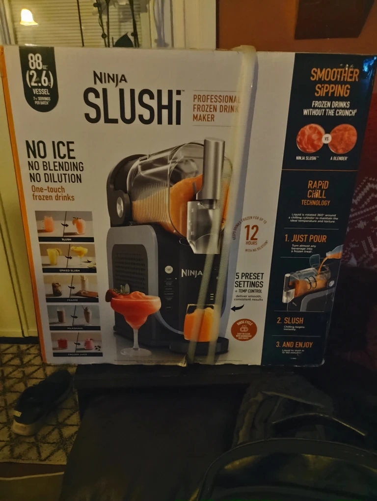 10Get ready to make some delicious frozen drinks with this Ninja Slushi maker! It's a professional-grade frozen drink maker that makes slushies without ice, blending, or dilution. Just pour, slush, and enjoy!this item is brand new and would be perfect for any holiday gift.half any regularly advertised price Don't lose this opportunity for a great deal!