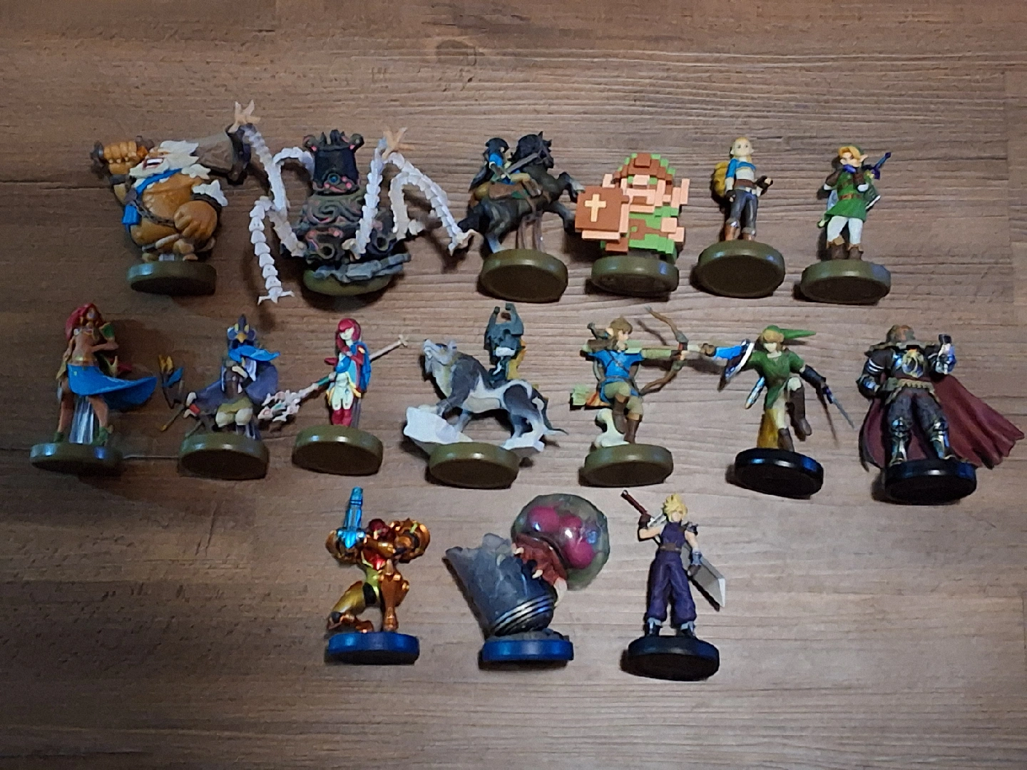 65Selling a collection of Nintendo Amiibo figures ( New & Used ) offer accept ONLY for buying more than 2 items, otherwise all offer will be ignored. [Amiibo/NEW] •the legend of zelda breath of the wild 4 gods : $140 •metroid samus : $40 •metroid zero suit samus : $40 •metroid ridley : $40 •metroid dread : $30 •super mario, cat mario & cat peach : $60 •monster hunter rise magnamalo : $60 •fire emblem chrome : $30 •fire emblem Robin : $30 •Bayonetta: $30 •Bayonetta player 2 : $50 •shovel knight gold : $40 [Amiibo/USED] •princess zelda BOW : $30 •guardian BOW : $30 •rider link BOW : $20 •8bit link : $30 •ocarina of time link : $50 •BOW god dark: $30 •BOW god urbosa : $30 •BOW god revali : $30 •BOW god mipha : $30 •Ganondorf : $$20 •super smash bros link with shield : $20 •mtroid samus ARAN & METROID (SET) : $200 •final fantasy 7 cloud : $30
