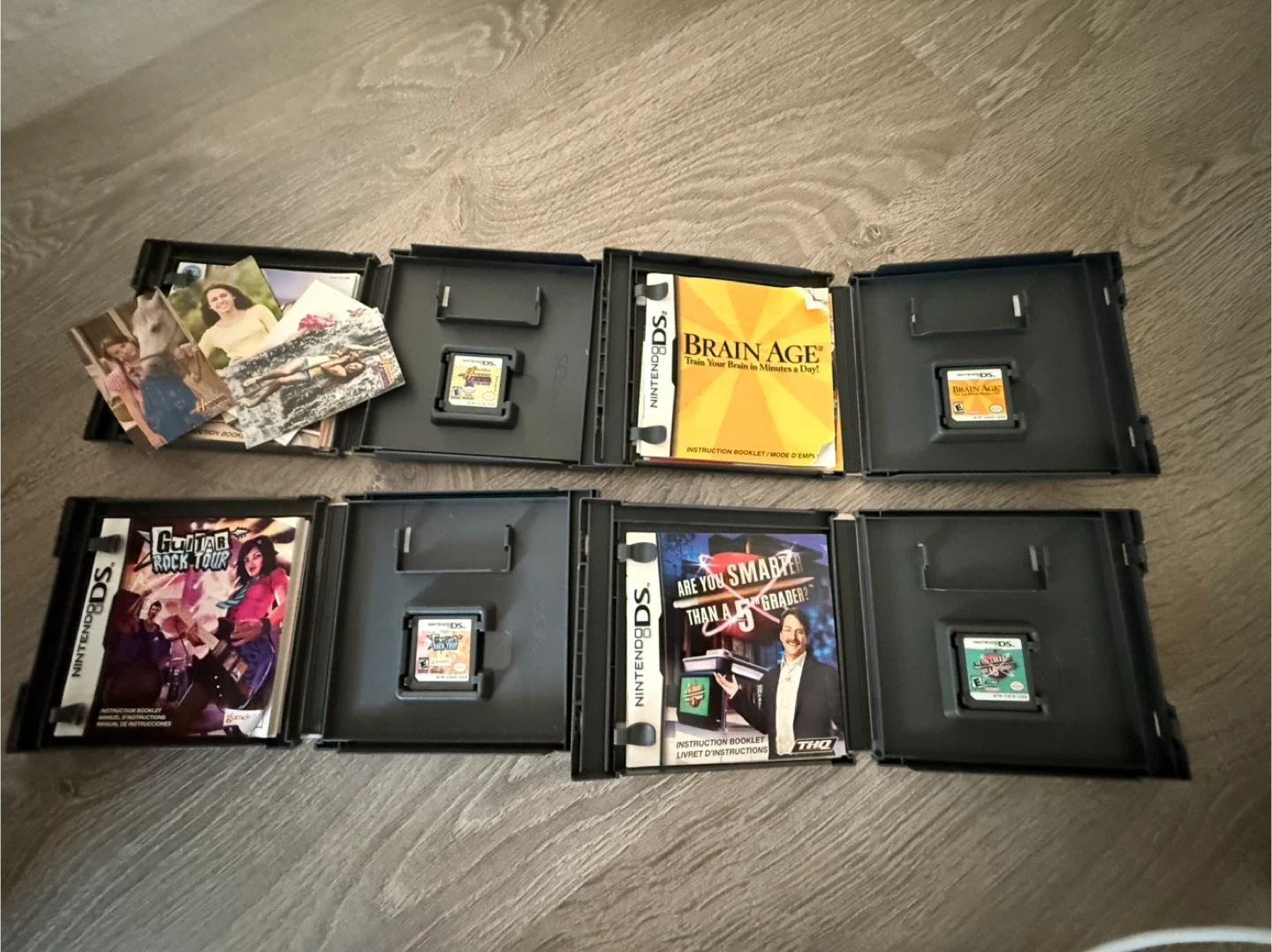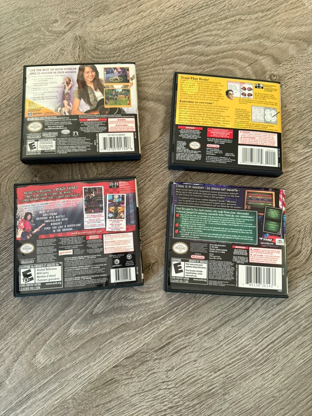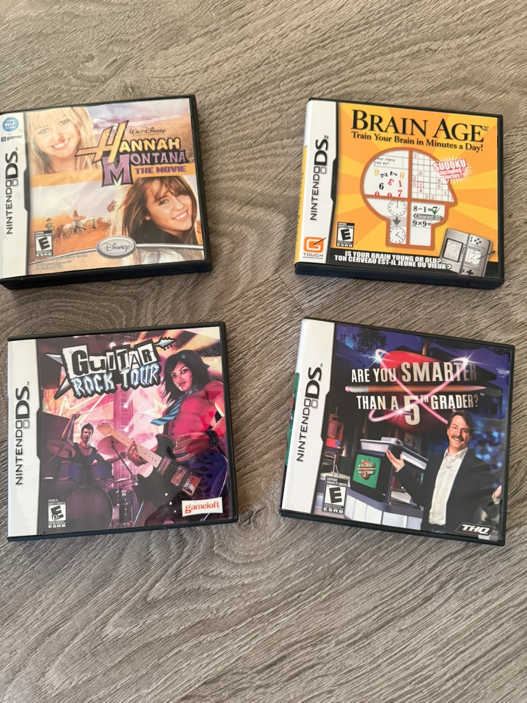 10Selling a bundle of Nintendo DS games! Includes: - Hannah Montana The Movie - Brain Age: Train Your Brain in Minutes a Day! - Guitar Rock Tour - Are You Smarter Than a 5th Grader? All games come with their original cases and instruction booklets