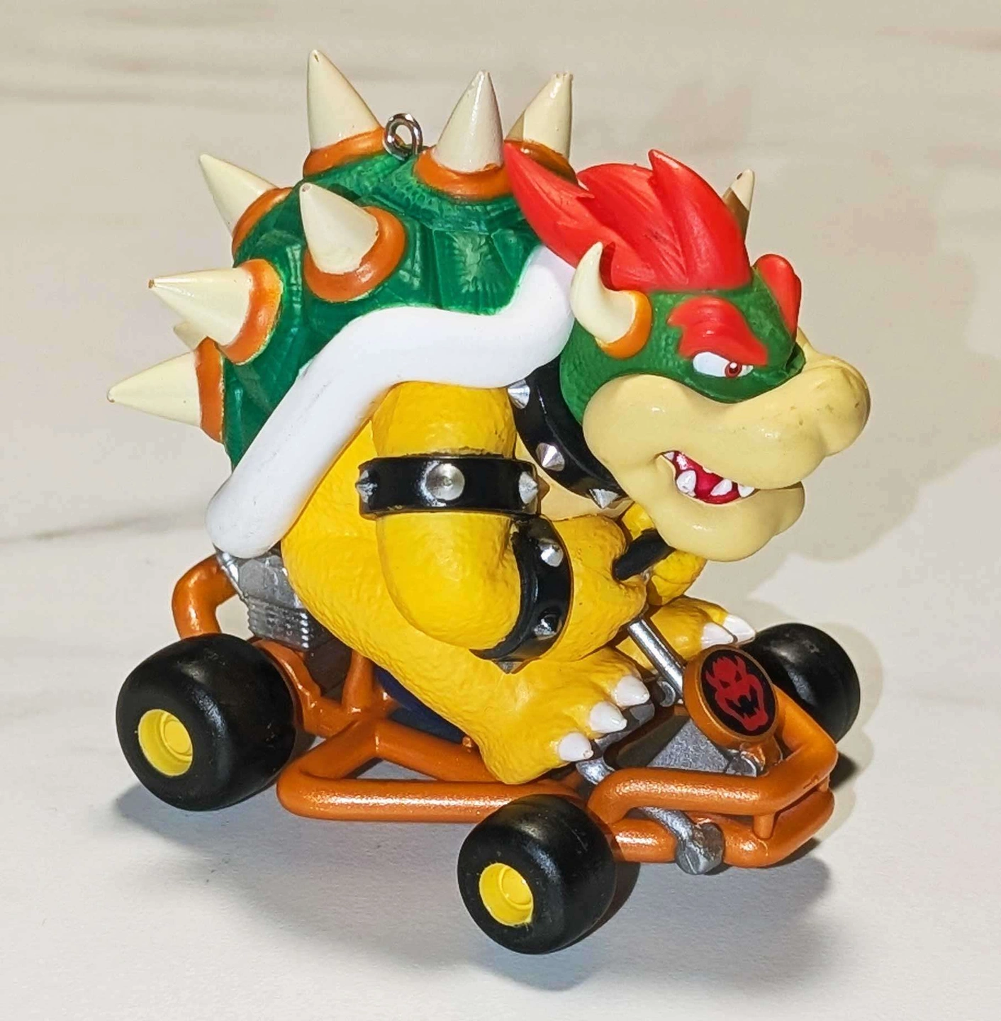 116If you are seeing this Ad, then this item is still available This sale is for 1 very nice and clean Nintendo Mario Kart Bowser Ornament - Hallmark 2002 - No Box. Transport the fun you've had burning up the track in Mario Kart to your holiday decorating with this Christmas tree ornament that's perfect for gamers of all ages. Featuring fan favorite Bowser gripping the wheel of his kart, naturally in holiday style with his signature green spiked shell and shock of red hair, this decoration accelerates the holiday fun with a boost from the racing video game that's been a hit for more than two decades. Features: π Burn up the track and spruce up the tree with this Keepsake Christmas ornament of Bowser hunkered down in his go kart from the beloved video game Mario Kart π Hallmark Keepsake Christmas ornaments are fun to collect and make great Christmas gifts for everyone on your list. π Artist crafted by Orville Wilson. Plastic Christmas tree ornament. π Ornament Size: Approx. 3.1 x 2.8 x 2 Pick-up in Pickering ONLY This item comes from a smoke-free home.