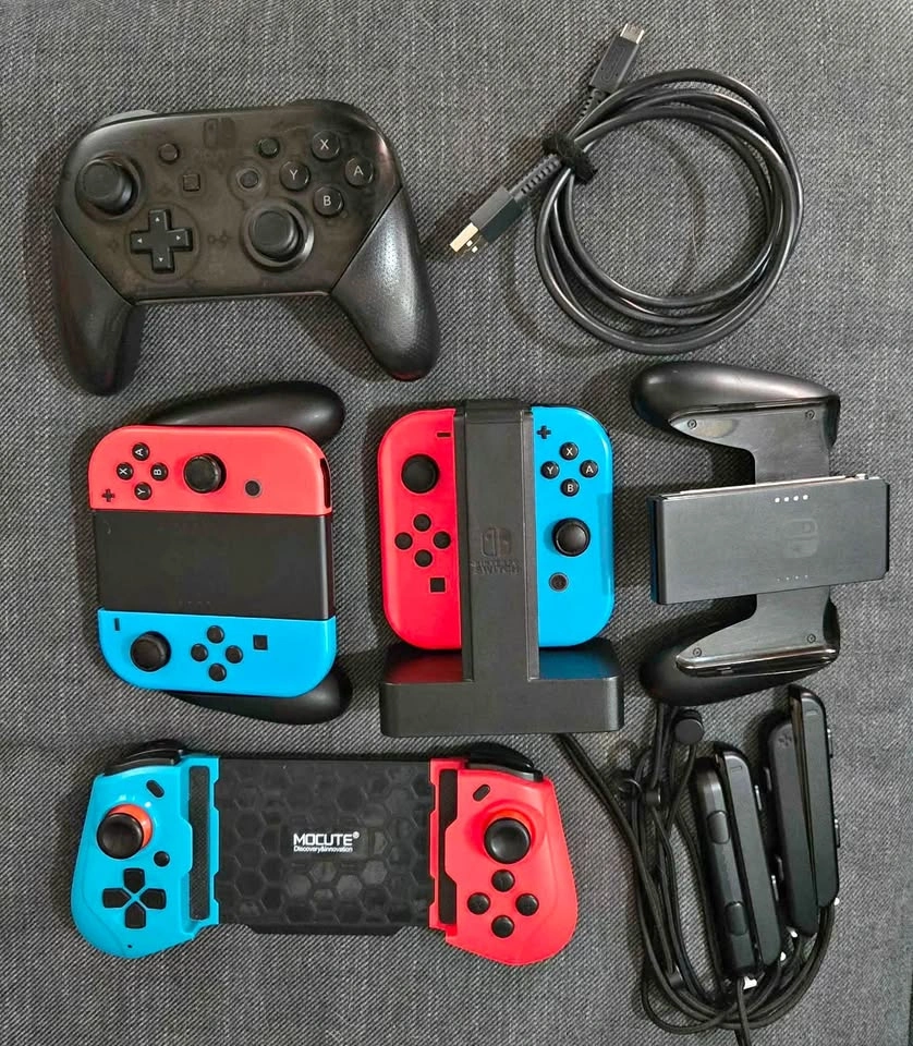75Selling lightly used Nintendo Switch Accessories Bundle. Great Value, Like New! Comes with: - 2 sets of Joy-Cons (L)/(R) Neon Red/Neon Blue w straps. No defects and drift free guaranteed! Like New! - Switch Pro controller and Nintendo branded USBc charge cord. Like New! - Nintendo Joy-Con 4 slot charger. - 2 Nintendo Joy-Con grips. - Free Gift: Mocute Wireless Gamepad Joystick for iPhone/ Android in classic Nintendo Switch colors. $40 @ Amazon!