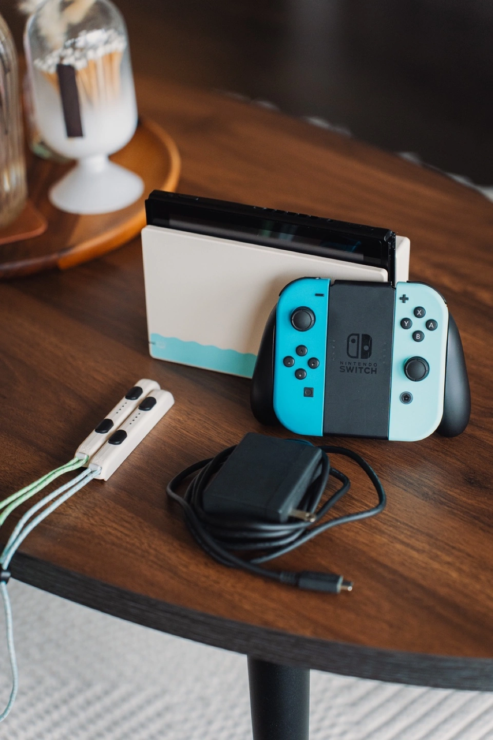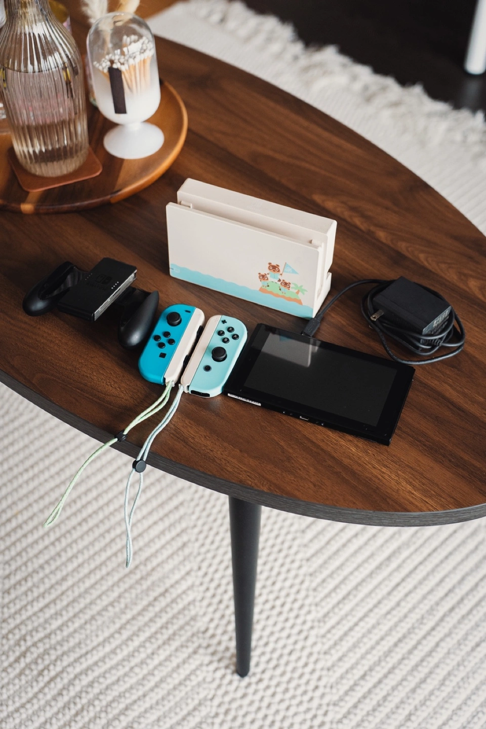 81Nintendo Switch console, blue neon and blue animal crossing Joy-Cons, charging cable, and dock. Includes Gigastone 256 GB microSD card. Pre-owned, good condition. Perfect for gaming on the go or at home. I have overcooked 2 and some cheap games, I can give you my account if you need them.