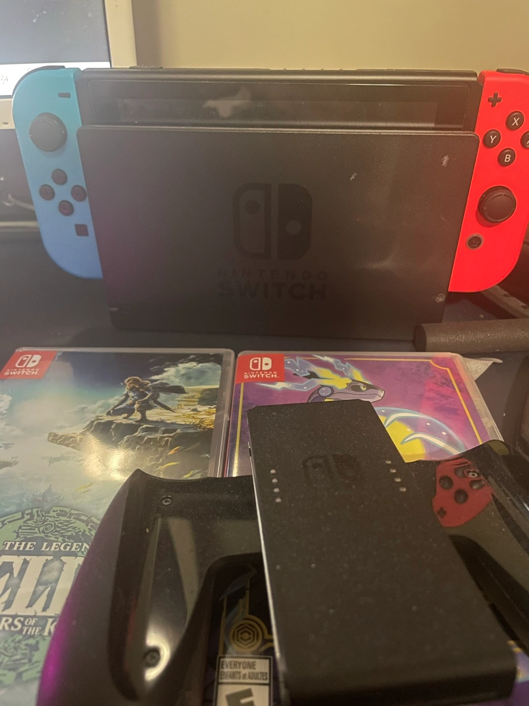 Come with Zelda tears of the kingdom , pokemon violet, zelda switch case and dock Works everything like new