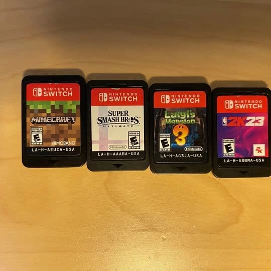 15Selling a used Nintendo Switch bundle Includes: - Nintendo Switch console (with both Joy-Cons - note: they have stick drift) - 4 games (Minecraft, Luigi's Mansion 3, Super Smash Bros, NBA 2K23) - Official Nintendo Switch dock - AC charger + HDMI cable (connect to any monitor or TV - Wireless Pro controller - Nintendo Switch travel/storage case