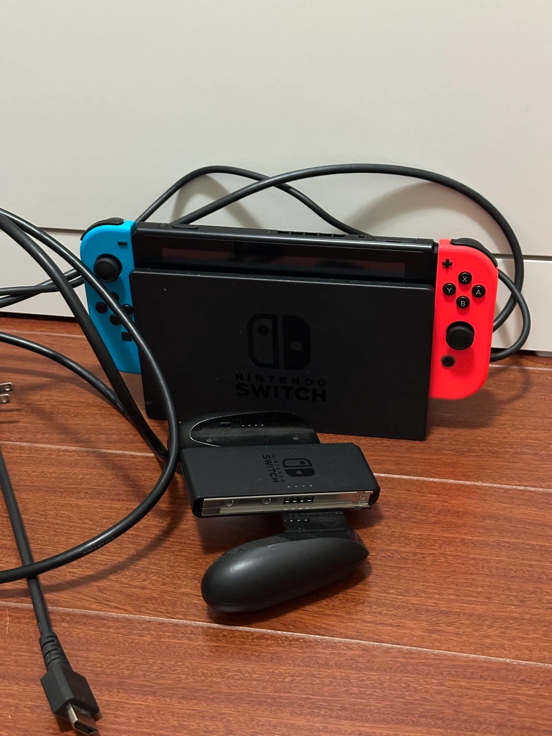Selling a Nintendo Switch console with the dock. Comes with all the necessary cables to hook it up to your TV and enjoy gaming on the big screen! The Joy-Cons are the classic red and blue. Ready for a new home!