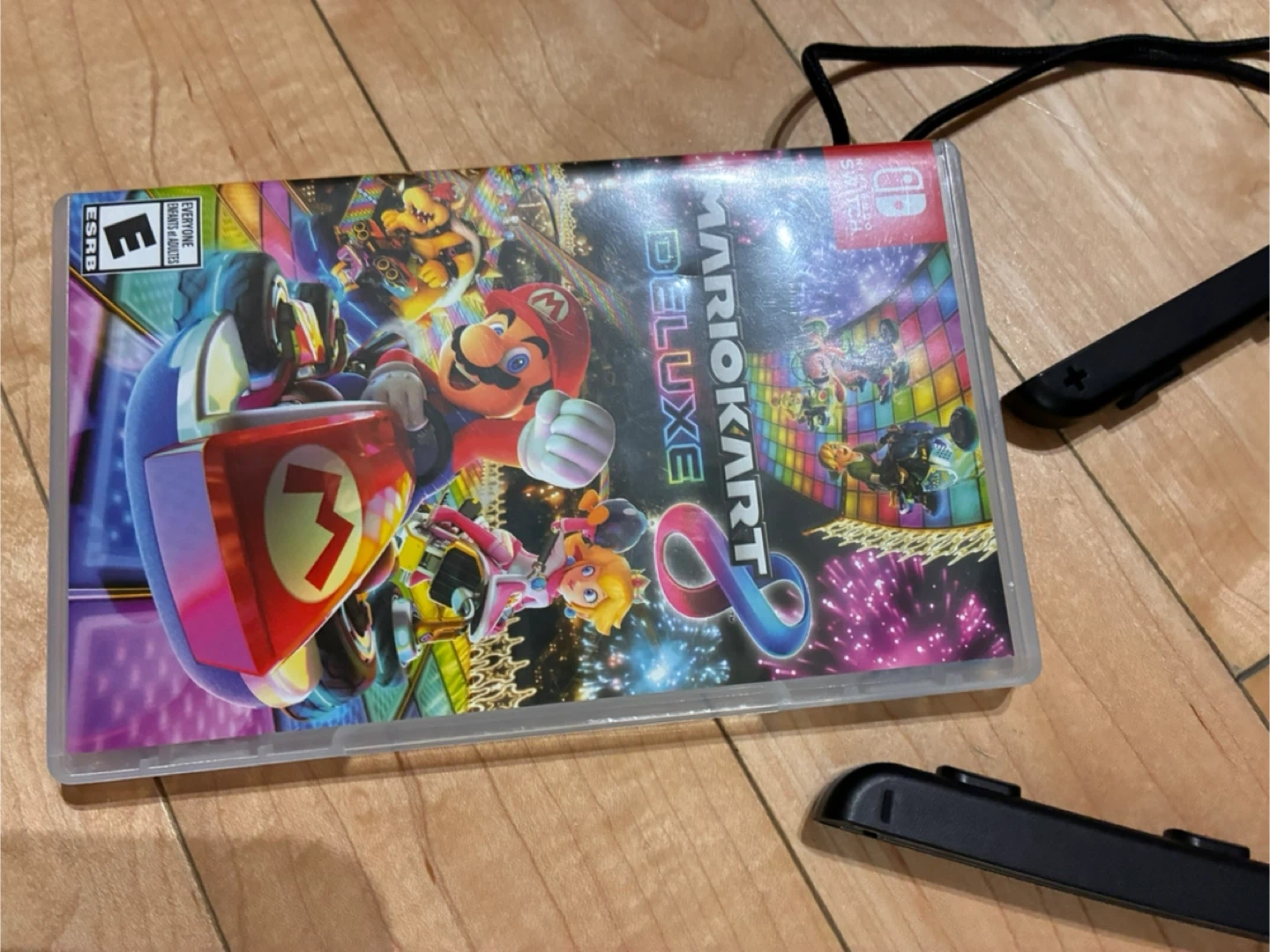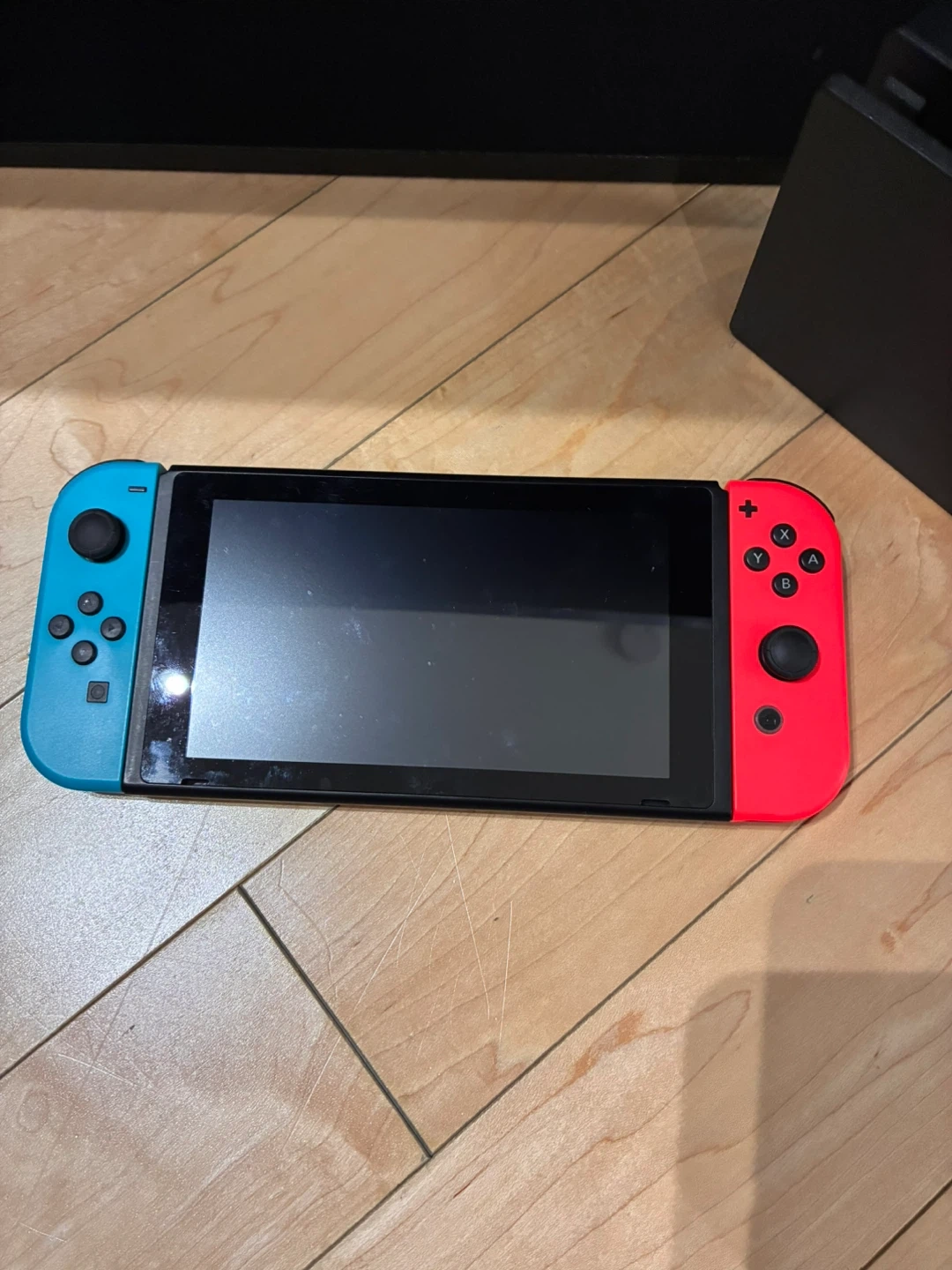 Selling a used Nintendo Switch console. Includes the dock, Joy-Con controllers, and charger. Everything you need to get gaming! Wrist straps and original box included. Bundled with Mario Kart 8 Also includes: HUNTING SIMULATOR game!