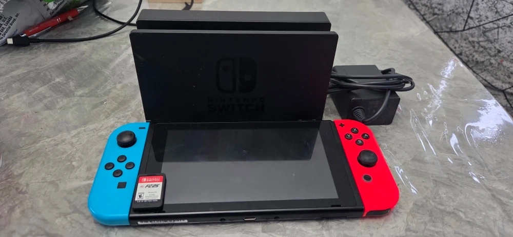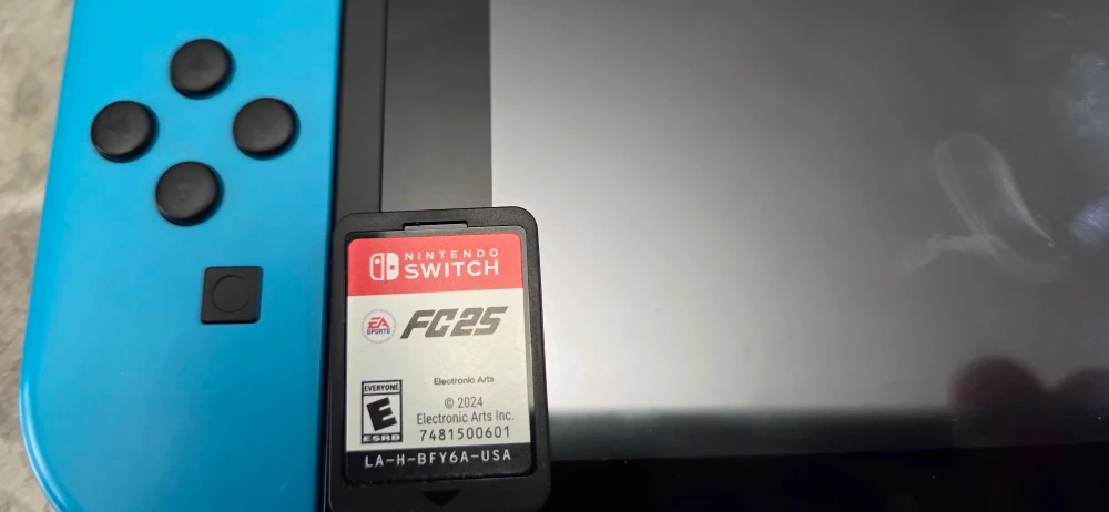 10Selling a Nintendo Switch console with the FC25 game. The game's copyright by Electronic Arts is from 2024. Included is the console, dock, and charger. The blue joy con L button is not working properly but u can buy new set for $10 and also the game cover not closing . No issues at all works like new with no dents or scratches comes with screen protector on it. Comes with FC 2025