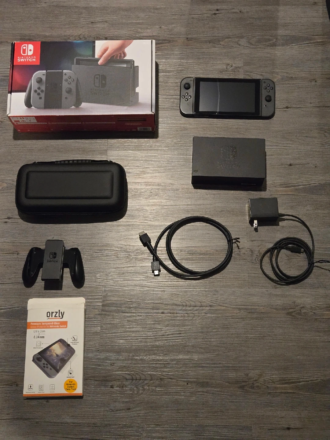 148Selling a Nintendo Switch console in great condition! Comes with all the original accessories, including the dock, charger, and HDMI cable. Also included is an Orzly carry case for easy portability and an Orzly tempered glass screen protector to keep the screen safe and scratch-free. An Orzly tempered glass screen protector is already installed. An extra one is included in the box. Games are not included.
