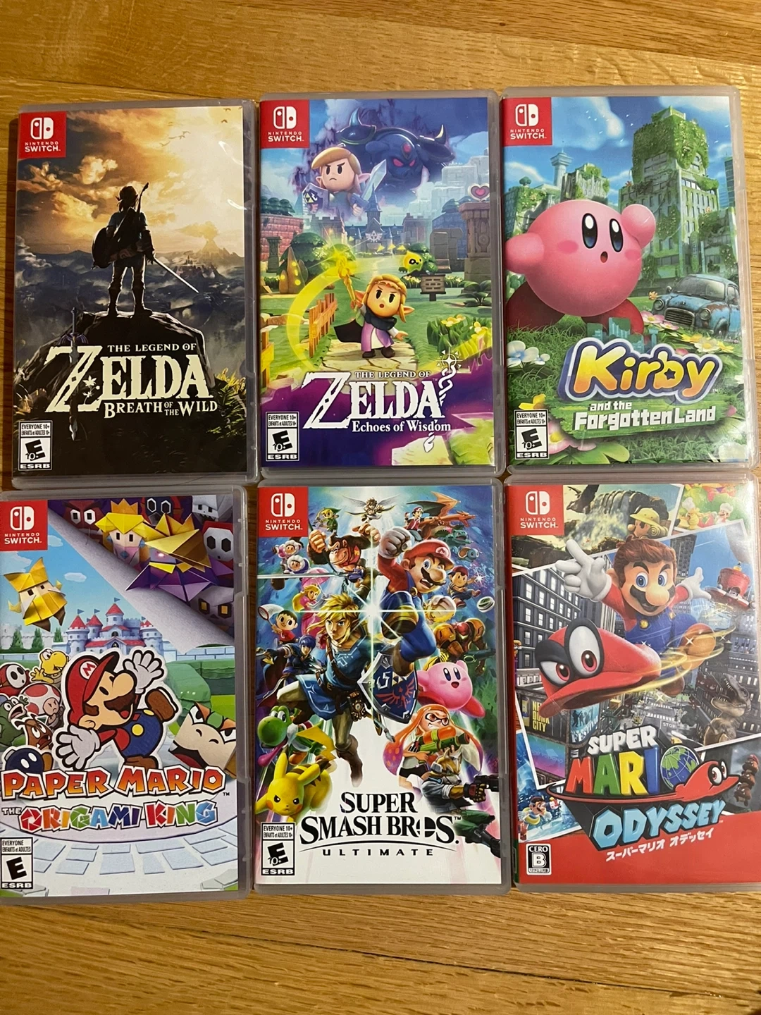 PRICE IS FIRM NO BUNDLED DEALS Selling a collection of Nintendo Switch games! Titles include - The Legend of Zelda: Breath of the Wild - The Legend of Zelda: Echoes of Wisdom - Kirby and the Forgotten Land - Paper Mario: The Origami King - Super Smash Bros Ultimate - Super Mario Odyssey