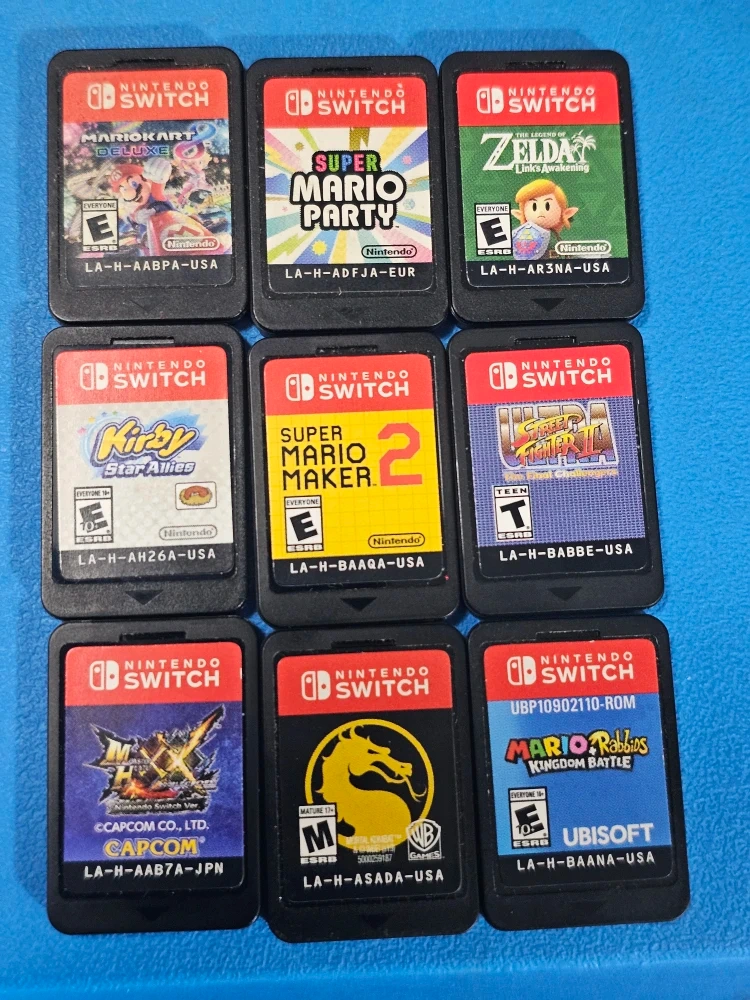 1000+Selling a selection of used Nintendo Switch games. All games are in good condition and have been tested to ensure they work perfectly. Titles include: Mario kart $55 Mario Party $45 Zelda Link Awakening $50 Metal kombat $30 Kirby Star Allies $45 Mario Maker 2 $45 Monster hunter $45 Street fight ultra $35 Mario Rabbids $25 Pick up only Downtown toronto Queen street west & dufferin street NO TRADING