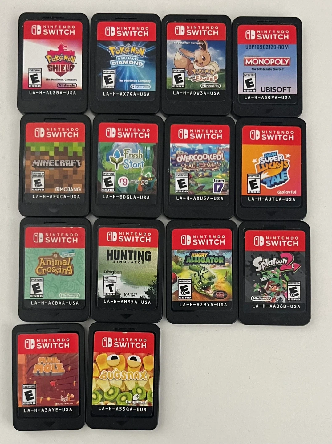 23Selling a collection of Nintendo Switch games! Titles include Pokémon Shield, Brilliant Diamond, Minecraft, Animal Crossing, Splatoon 2, and more! All games are in great condition and ready for a new home. Perfect for expanding your Switch library or trying out new adventures no cases.