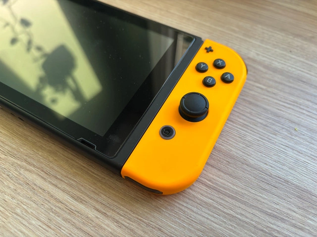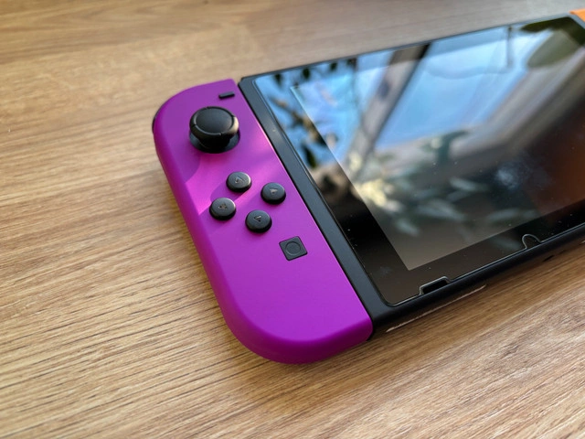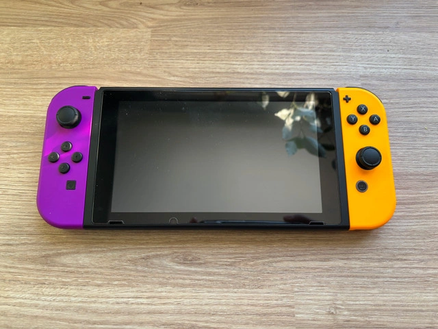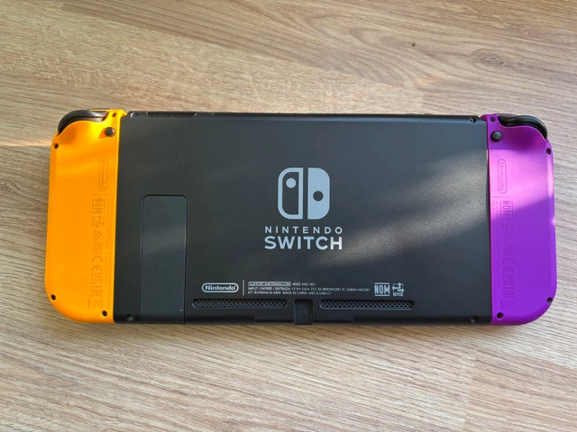 Grab these unique custom purple and orange Nintendo Switch Joy-Cons! adding a vibrant twist to your gaming setup.