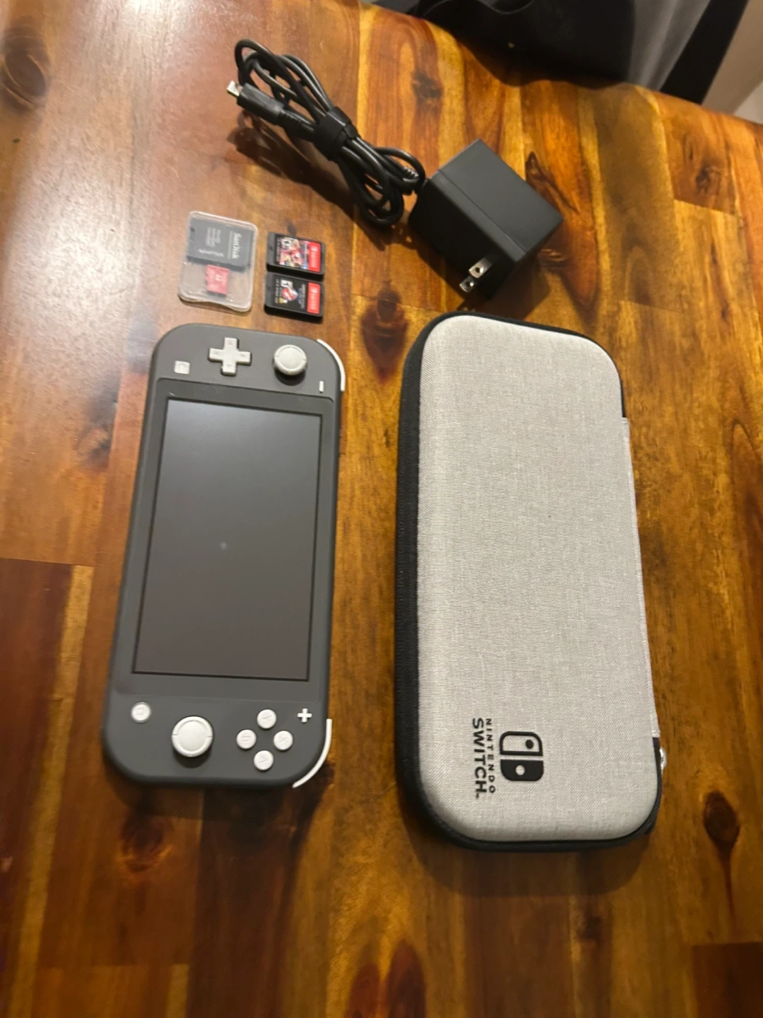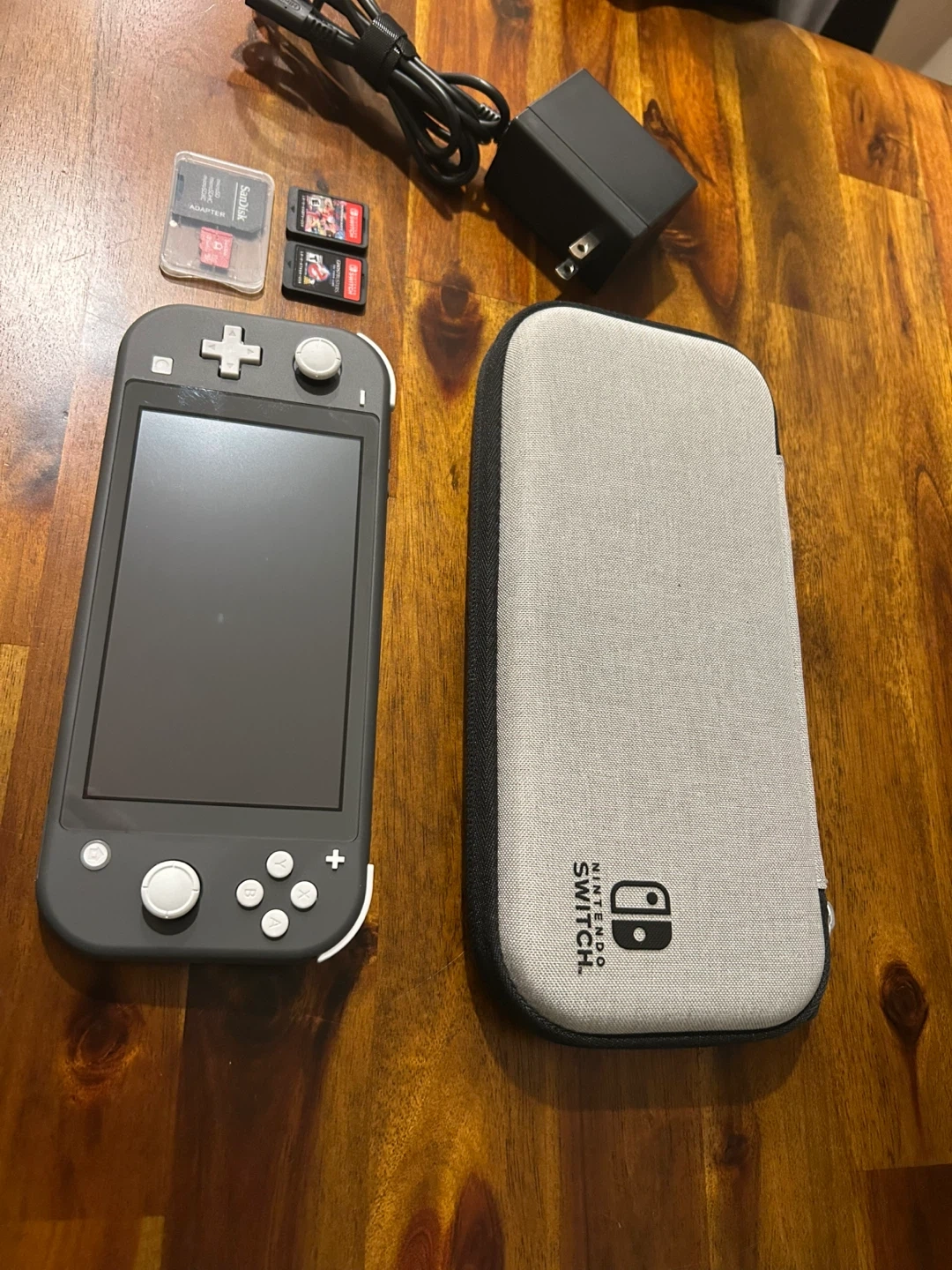 15Selling a Nintendo Switch Lite in the grey colour! It comes with a carrying case, Mario Kart 8 and Ghostbusters the video game. Also includes the charger and some extra SD cards. Got it a year ago and rarely used - like brand new.