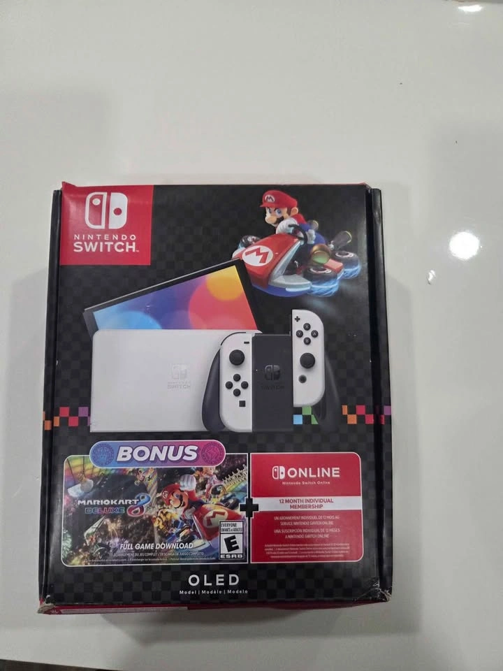 10Selling my Nintendo Switch OLED in great condition! Comes with the original box, all original parts (dock, Joy-Cons, grip, HDMI & power cable), and Mario Kart 8 Deluxe (no game case). A screen protector is already installed for extra protection. Everything works perfectly — just plug in and play!